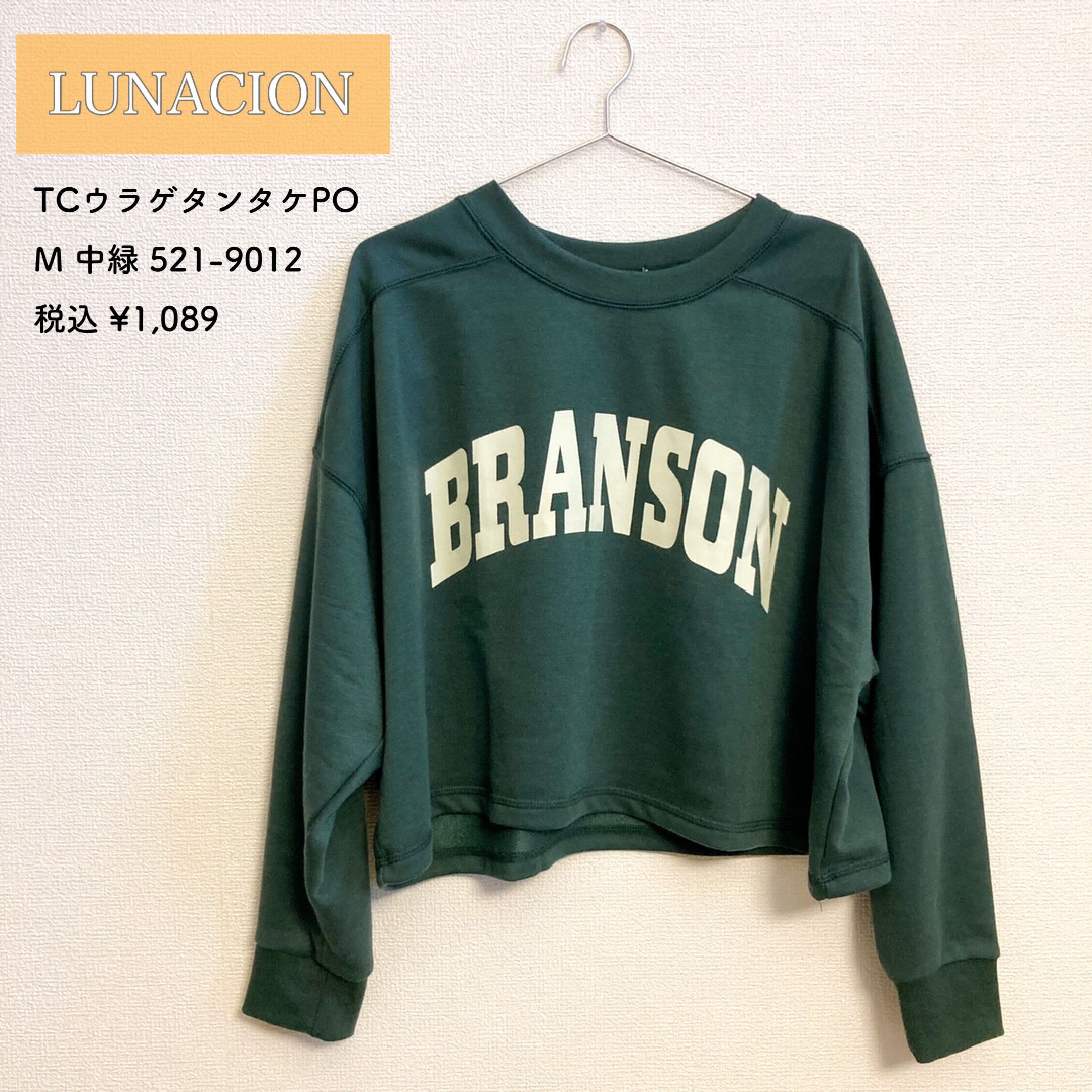 グリーンのショート丈ロゴスウェット 税込1,089円