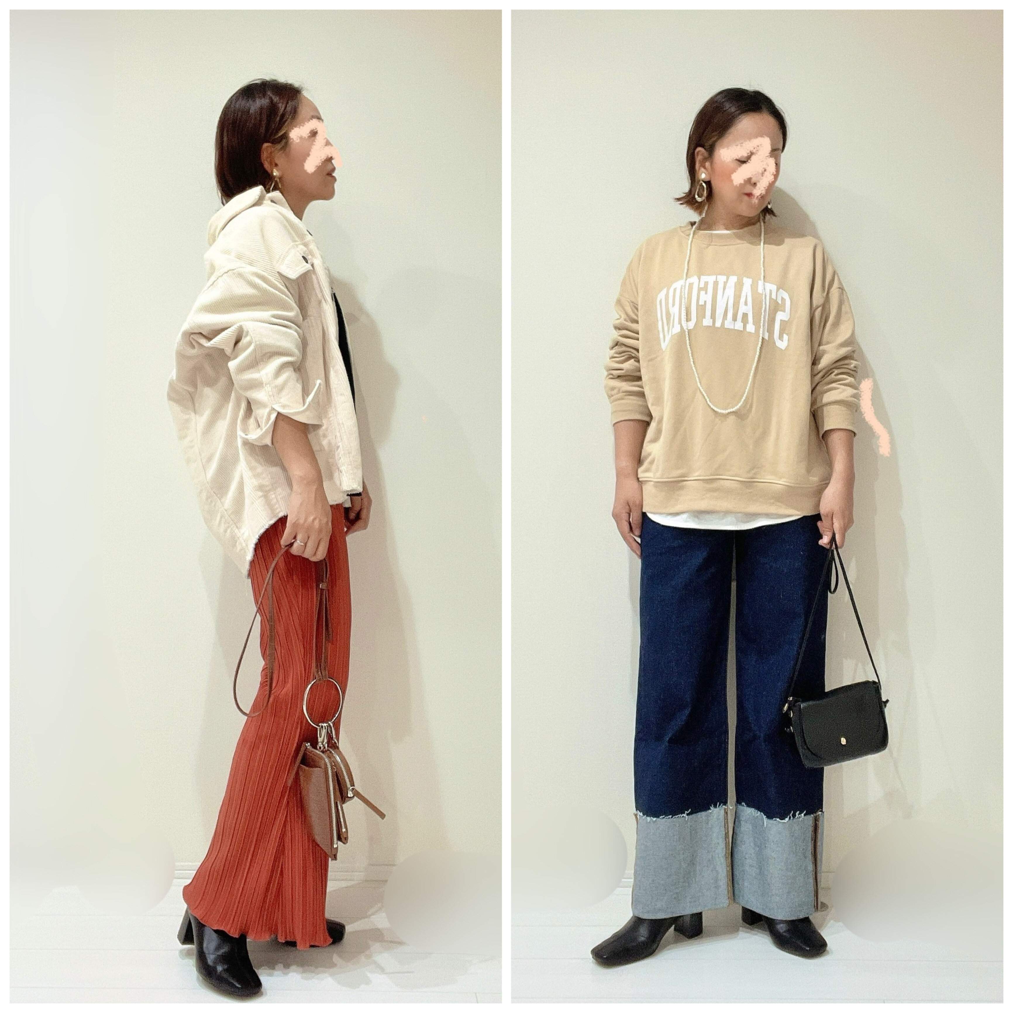 足元が黒なので、真ん中(バッグ)と顔まわり(帽子)にも黒を持ってくると、一気に秋冬モードになります。ワイドパンツにも、裾が締まったパンツにも、とにかくどんなボトムスでも合わせやすいのが特徴です。