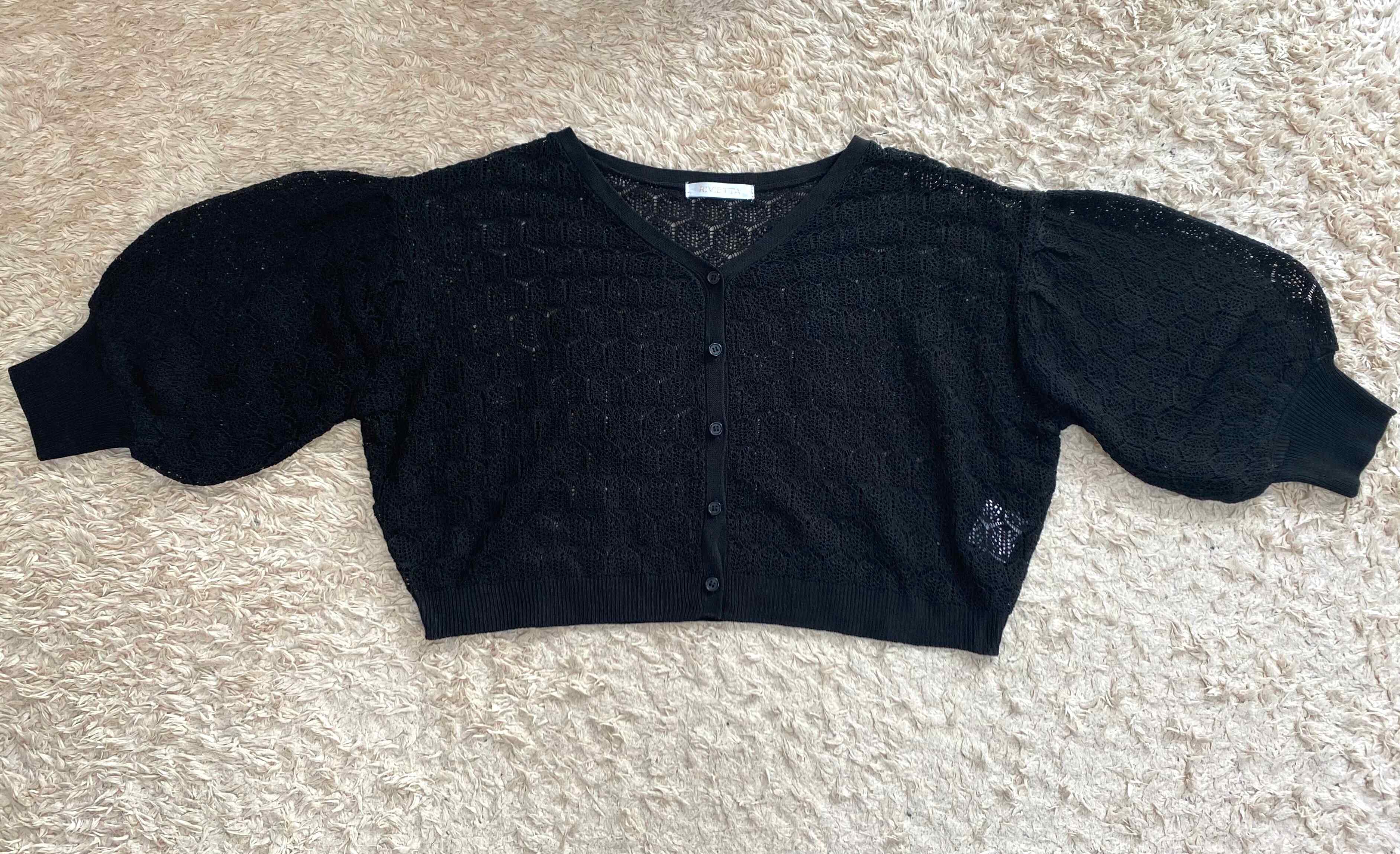 カラーはブラックで五分袖の春夏仕様カーディガンです。