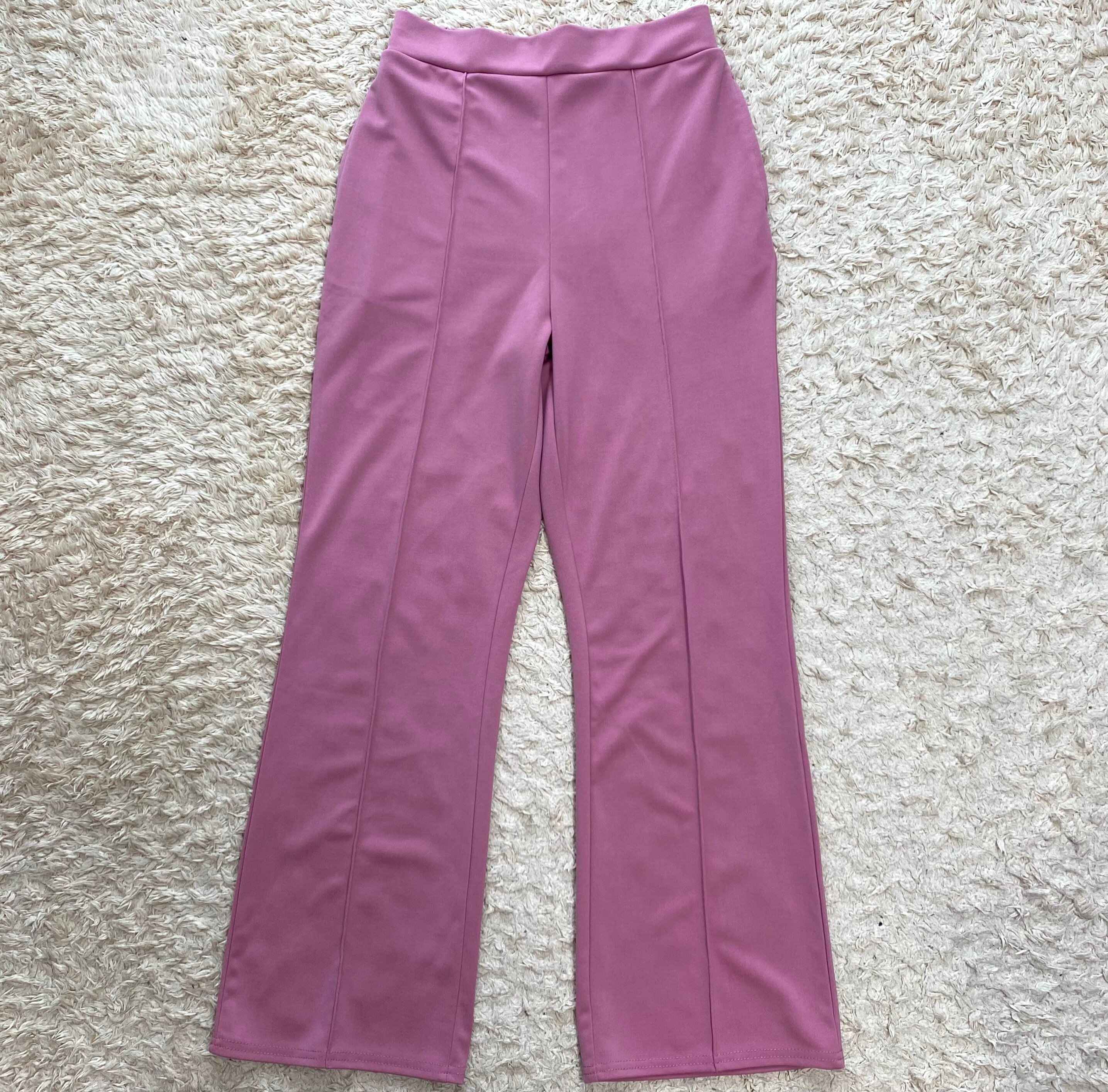 今回はしまむらで見つけたストレッチで楽ちんなうえに、センターシームで脚長効果ありの1089円ピンクカラーパンツをご紹介します。