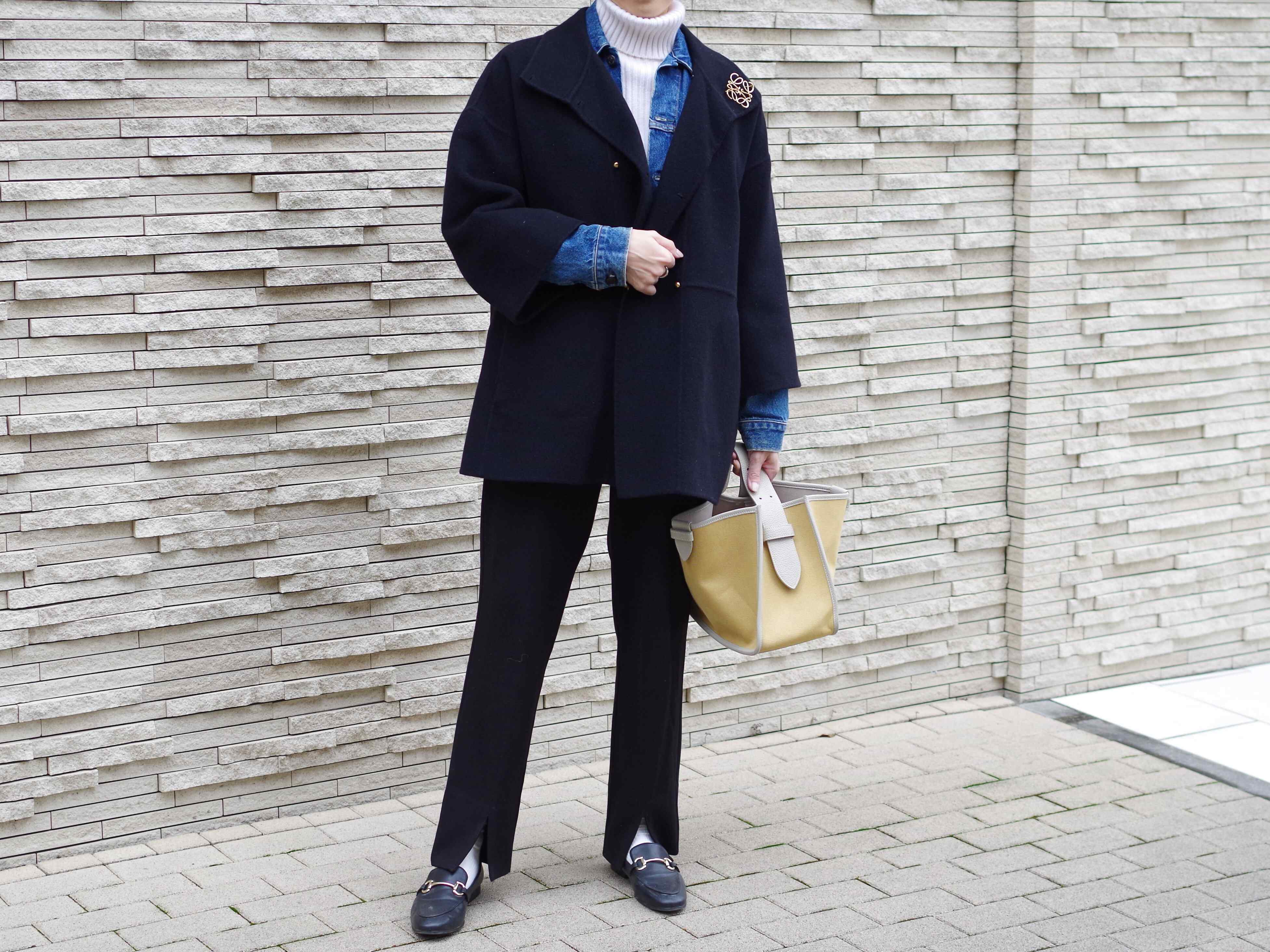 少し薄手のコートには、ライトアウターを重ね着するのがイチオシ!筆者は飽きずに、毎年したくなるスタイルです。合わせるべきコートは、裏地がないような柔らかな生地感のウールコートに合わせるとしっくり。チラッとデニムジャケットをインナーとして効かせるだけで、春らしさがアップできます。