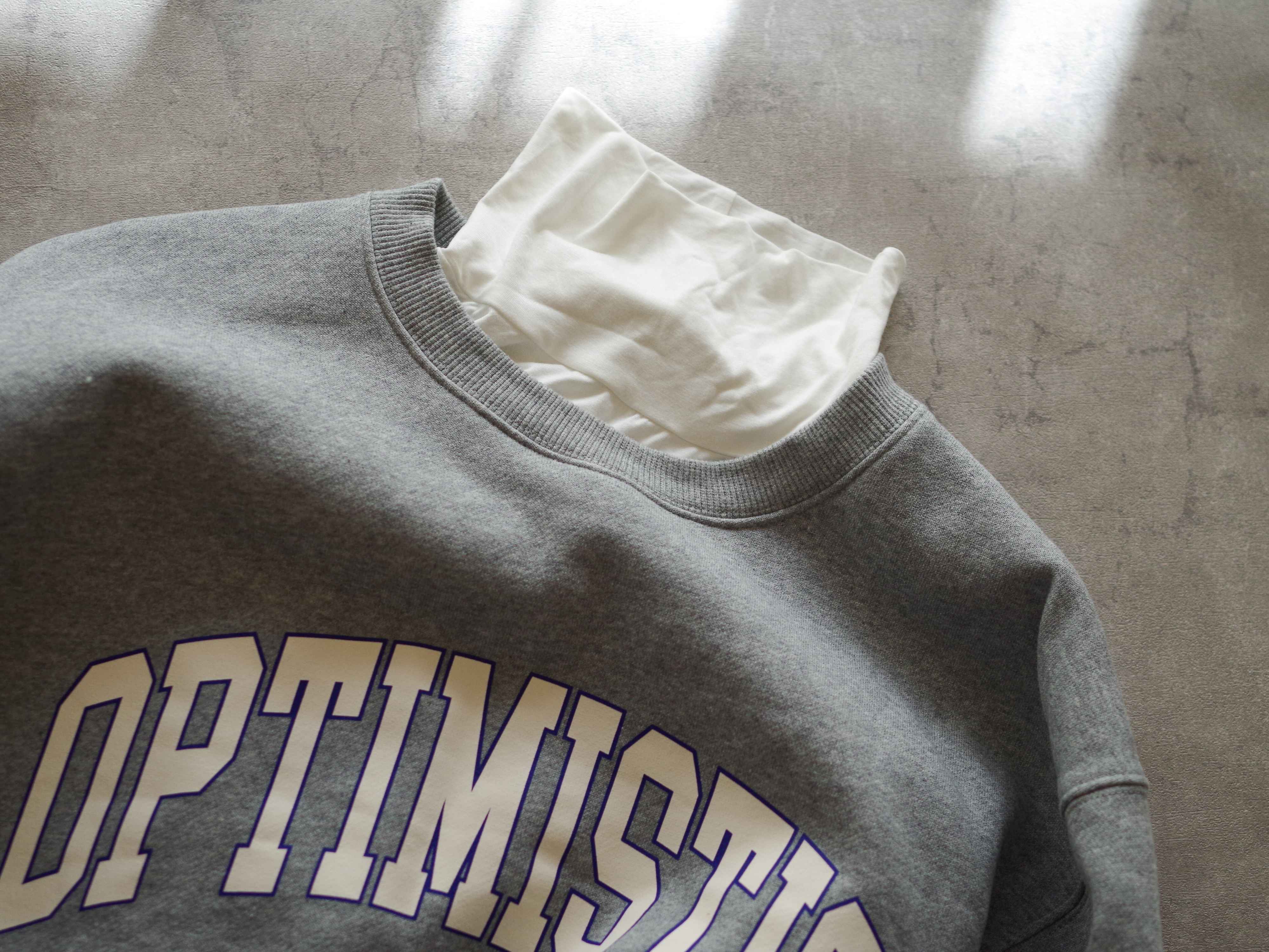 タートルネックインナーは、白や黒ならどんなスウェットと合わせても間違いないと思いますよ。簡単かつ暖かくいられるので、すぐ実践できます!