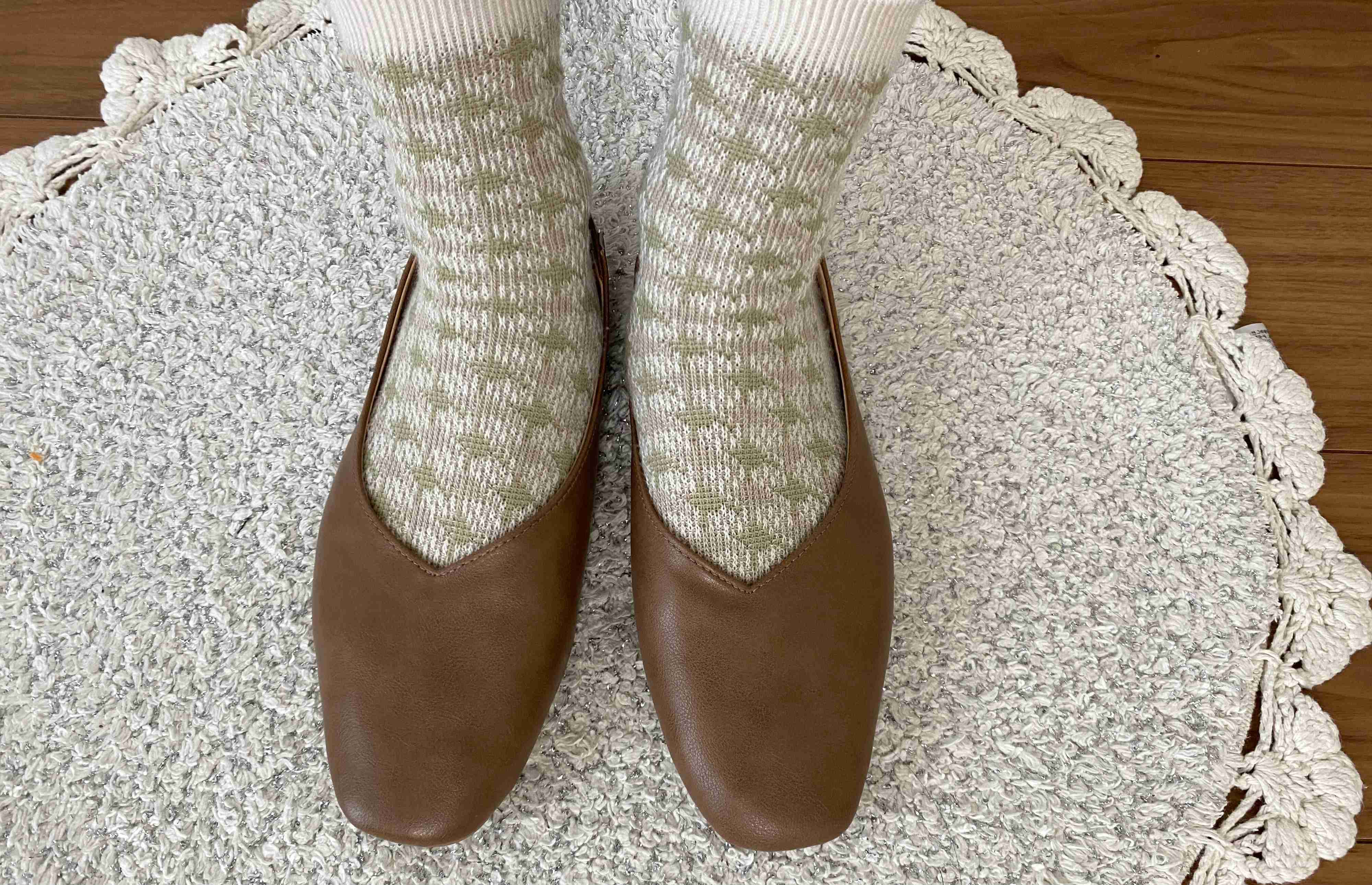 白ソックスと同色系のブラウンのソックスを合わせましたがそれぞれ違った雰囲気が楽しめます。