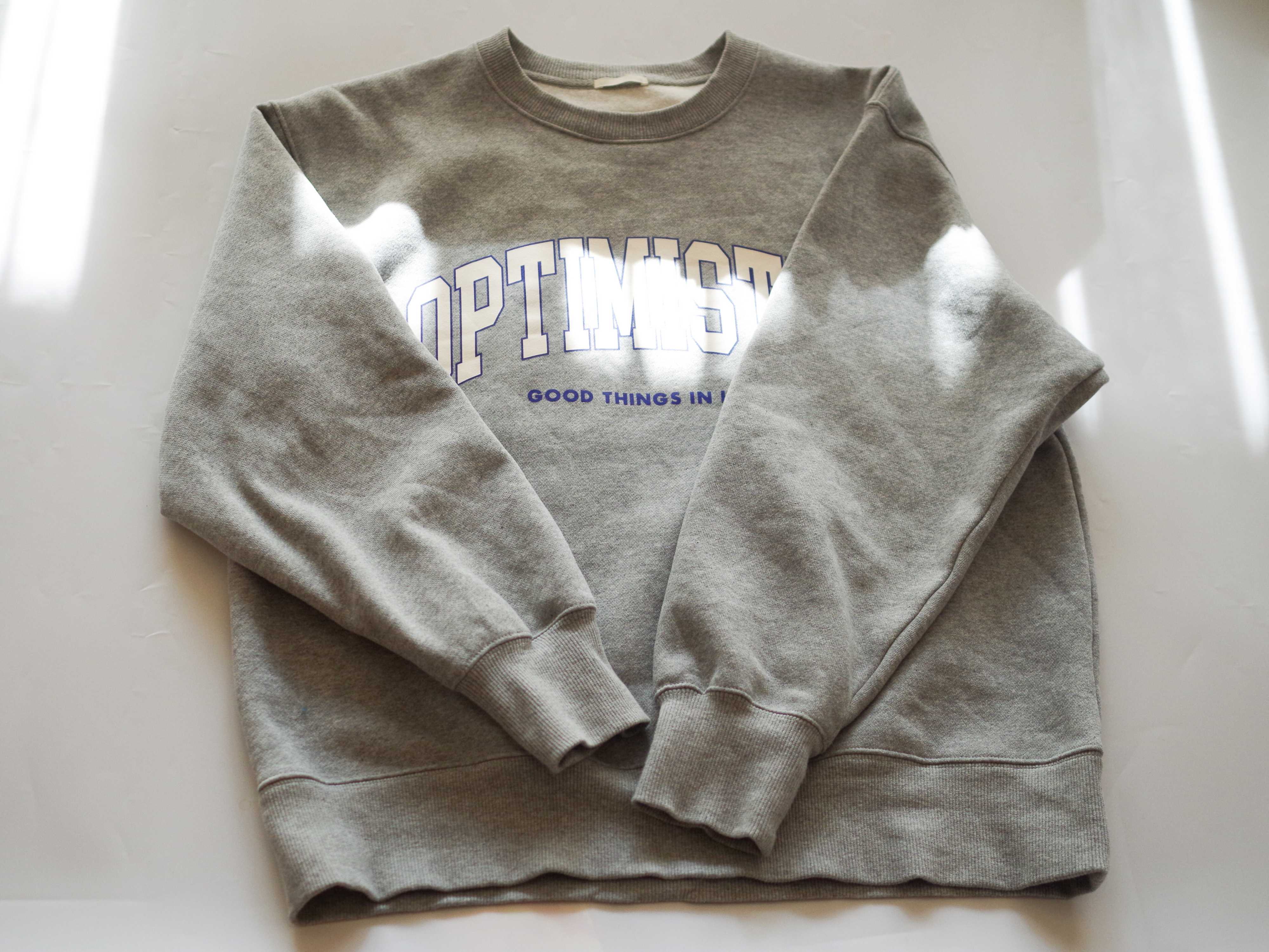 ドロップショルダーなシルエットで、着るだけでこなれて見せてくれます!GUにはスウェットがたくさんありますが、ヴィンテージライクな風合いのものを狙うと、とても高見え。こちらのスウェットもその一つ!