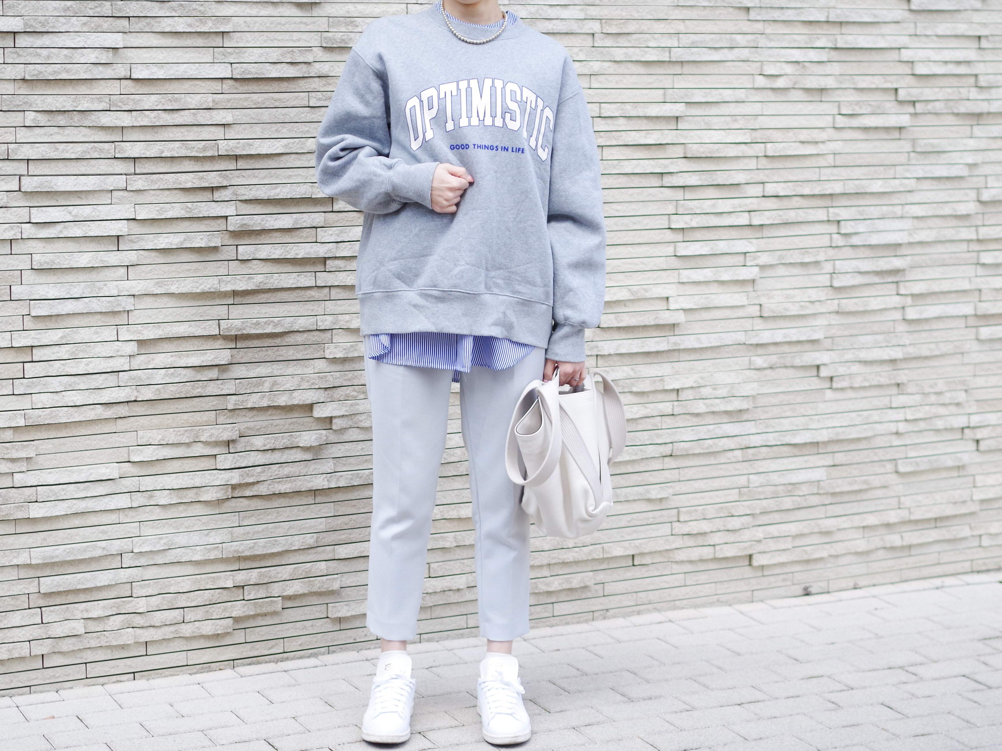 裏起毛なので、春本番には暑いかもしれませんが、冬の終わりかけである“今”着るのに最適です。春はブラウスなど薄手素材や、ライトアウターも気になってくるのでスウェットは、「春を見越して」というよりも「今の気分」を優先したほうがいいのかもしれません。