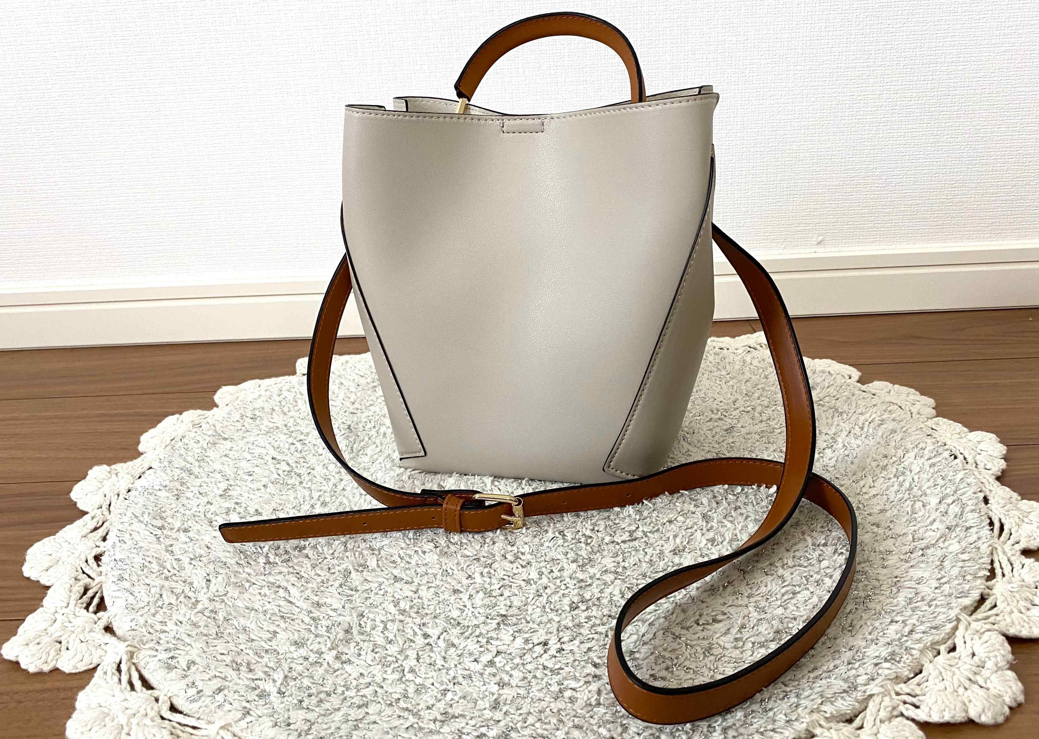 一つ目にご紹介するのはワンハンドルと落ち着いたグレージュカラーが今っぽいこちらの2wayバッグです。