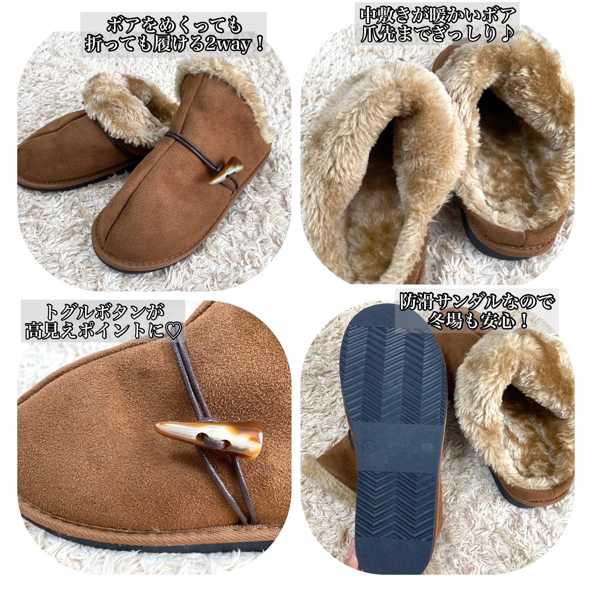他にもデザイン違いのボアシューズや、カラーもこちらのブラウンの他にベージュとブラックがあるようでした。