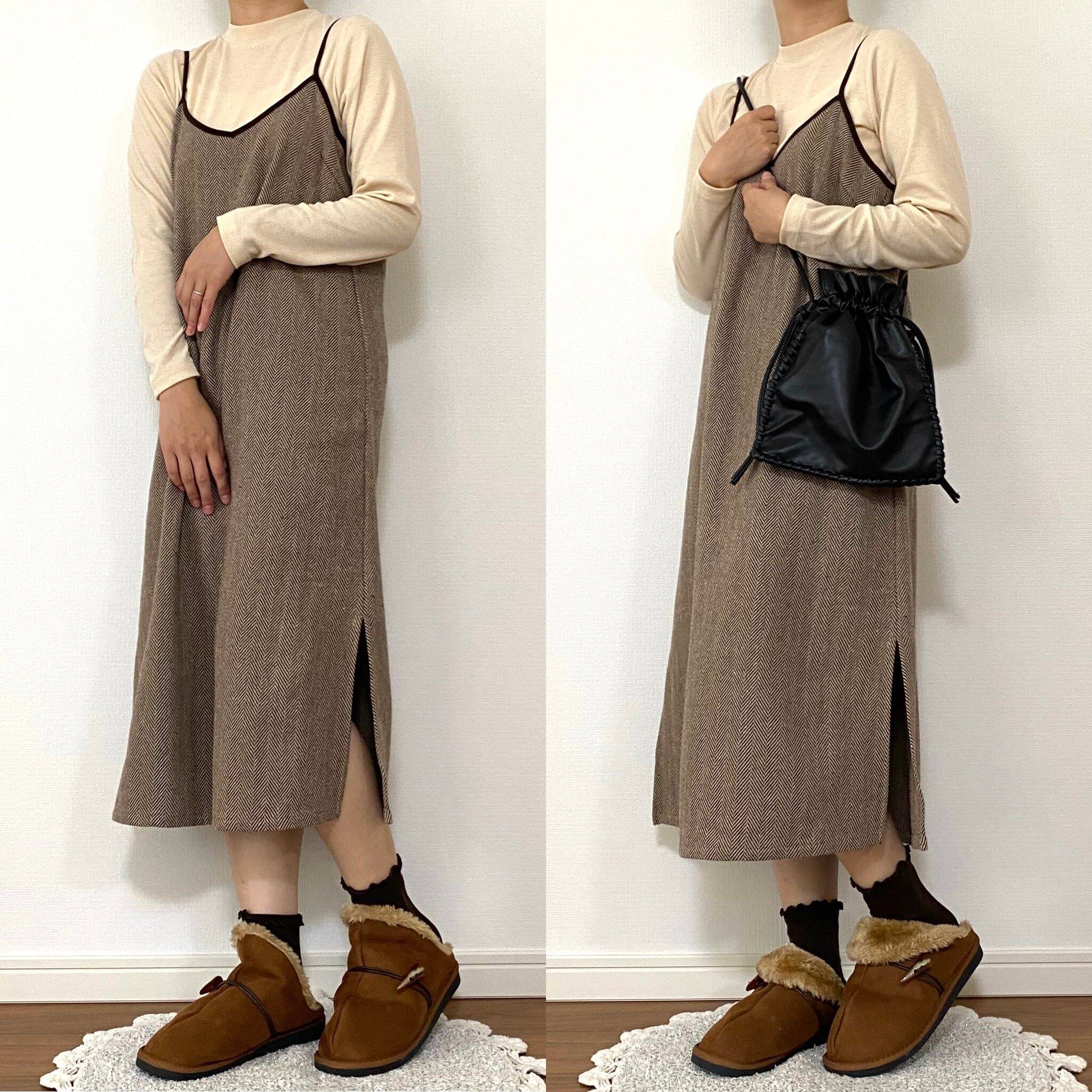 ボアをめくると足首近くまでふかふかのボアが包み込んでくれるのでより暖かく、折り返すとボリュームアップしてコーデのポイントになりますね!