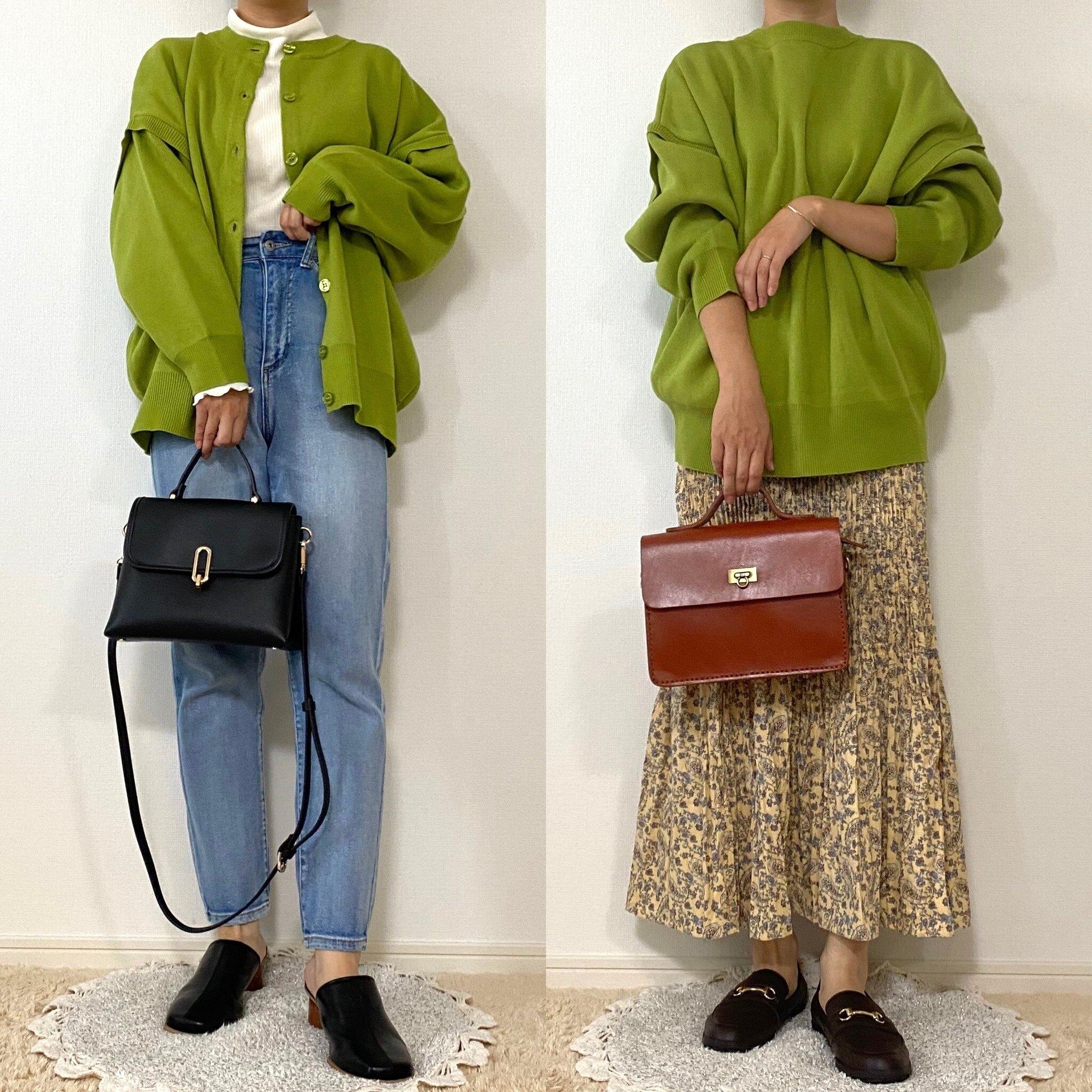 一目惚れで購入したものの、「結構明るいグリーン…何に合わせよう」と正直悩みました。