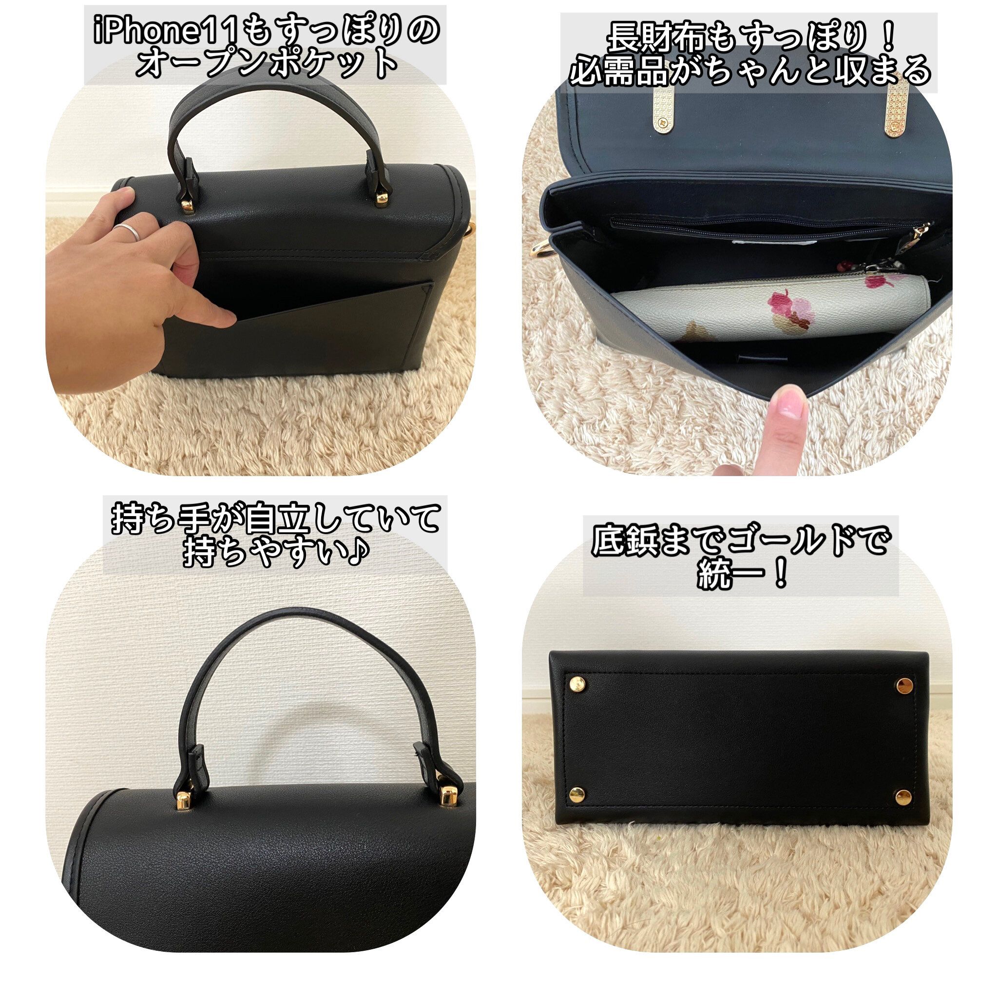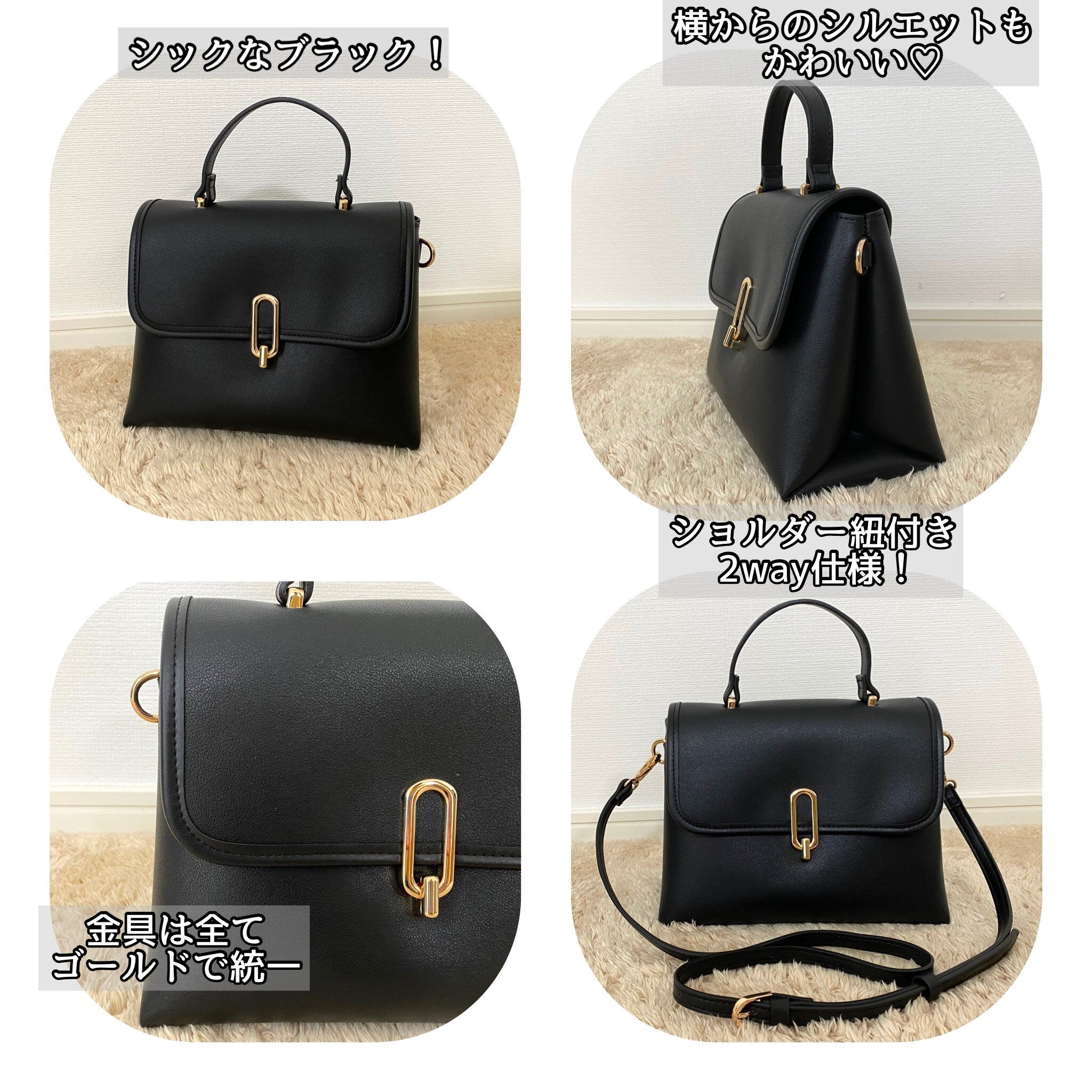 黒にゴールドの金具が映えてとっても高見え!横からのシルエットもかわいいですよね。