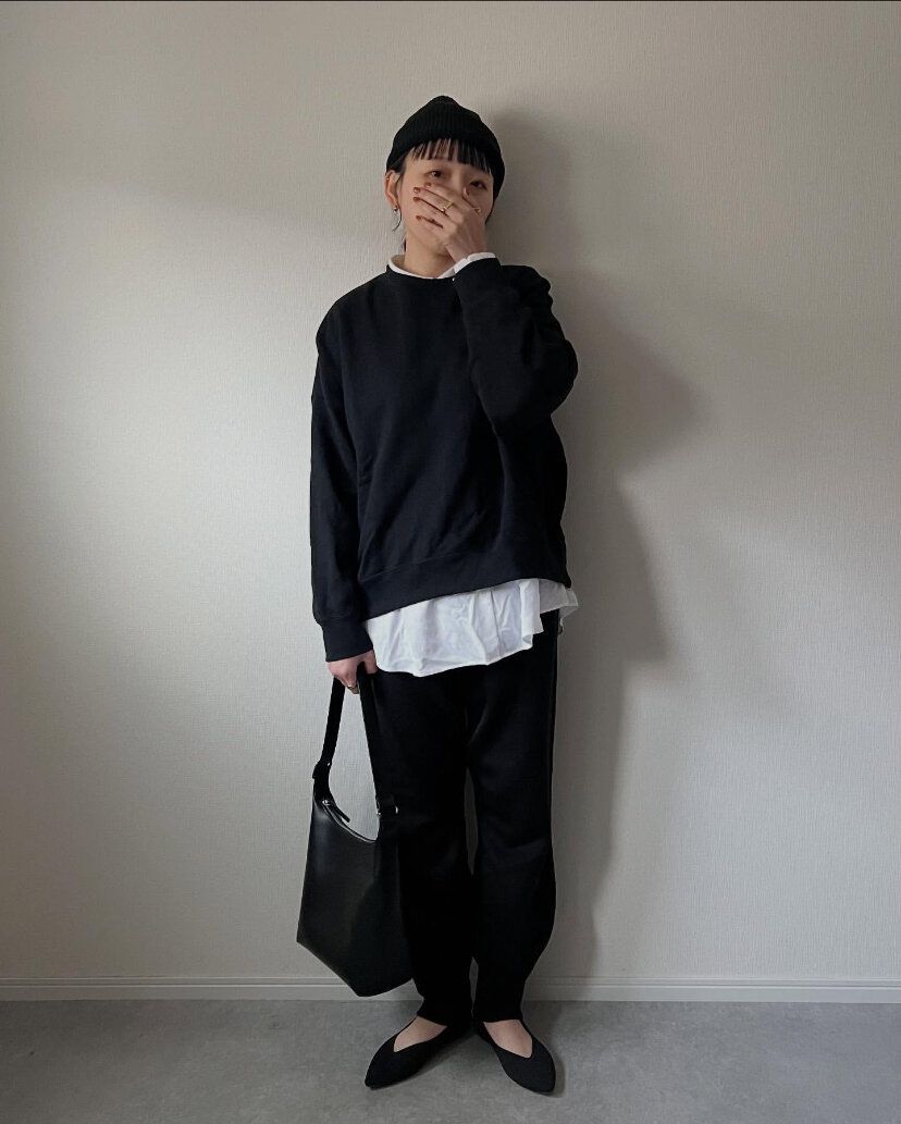 おしゃれに着こなすのはややハードルの高いスウェットセットアップは、モノトーンコーディネートに差し色をプラスすれば部屋着っぽくならず、おしゃれな印象を与えることができます。ユニクロ「スウェットワイドパンツ」(3,990円)は、スウェット生地のアイテムですが、デザイン性の高いパンツなのでスウェットセットアップにチャレンジしやすいかも。