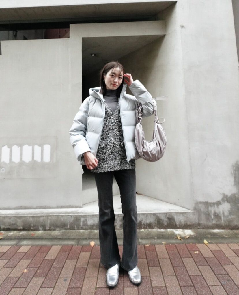 モノトーンコーディネートはトレンドのシルバーアイテムとも相性抜群♪落ち着いた印象のモノトーンコーディネートにシルバーアイテムをプラスすることで華やかさもプラスできちゃいます。お洋服にシルバーを取り入れるのが難しい人はバッグやシューズで取り入れてみて。ユニクロ「シームレスダウンパーカ」(12,900円)はカジュアルになりすぎず、きれいめファッションにも取り入れやすいのでアラフォー女子におすすめのアウターのひとつです。