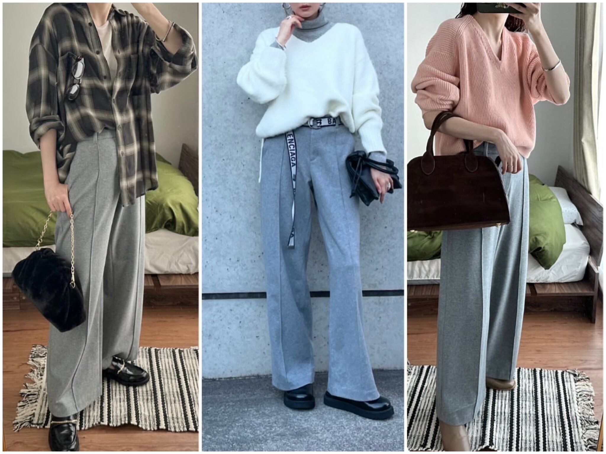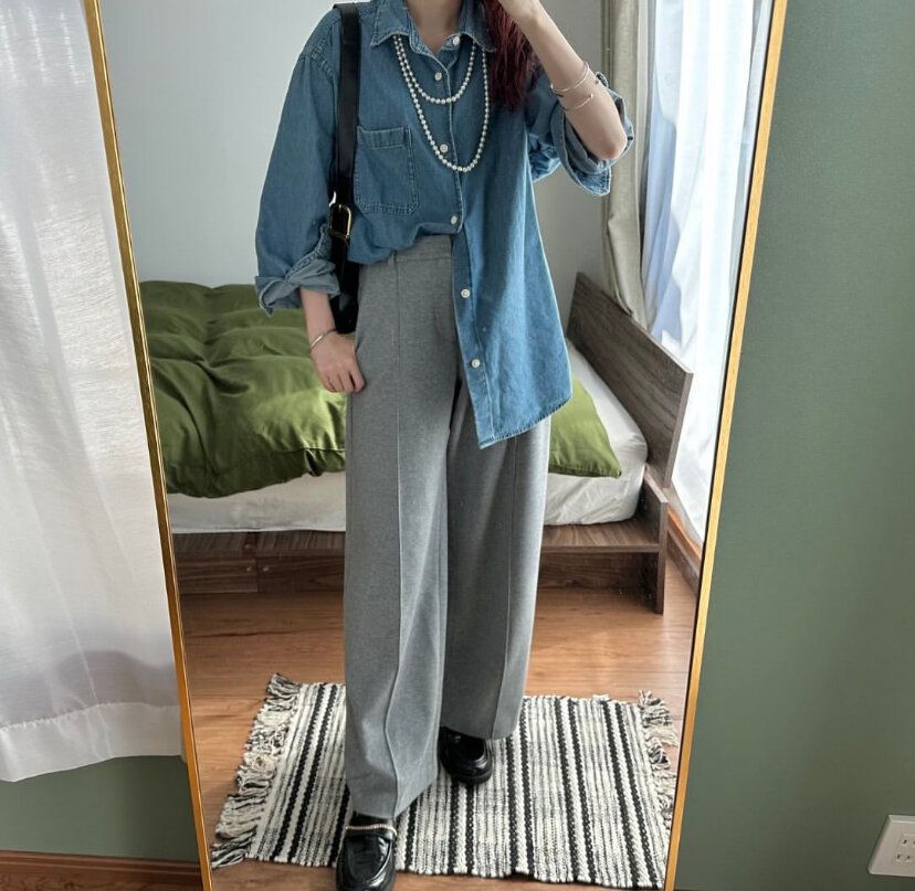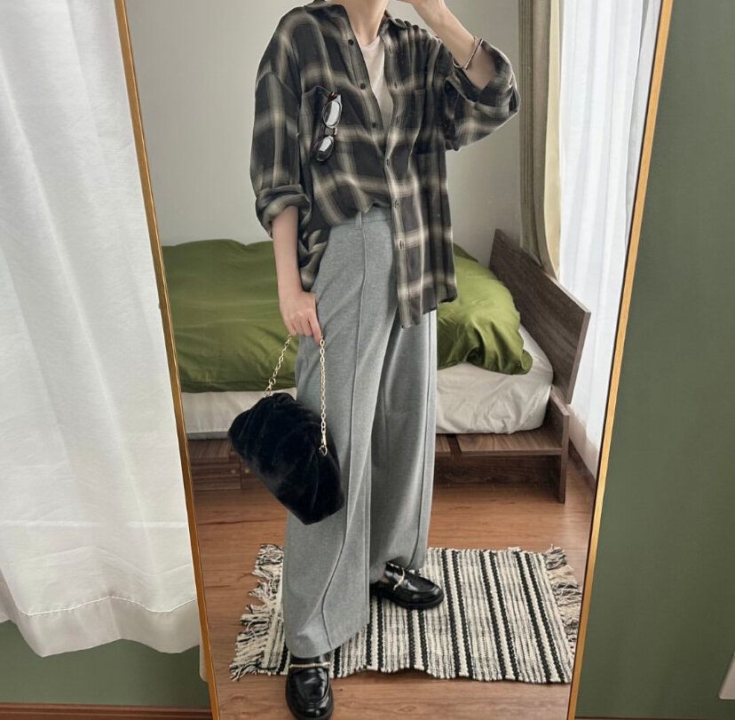 ブラッシュドジャージワイドパンツは、すでに販売されているユニクロのタックパンツと比べるとやや小さめの印象。いつものユニクロのタックパンツと同じサイズを選んだら入らなかった!という人も。可能であれば店頭で実際に試着してみてサイズ感をチェックするのがマスト。とくにウエストが細身になっているようなので要注意です。
