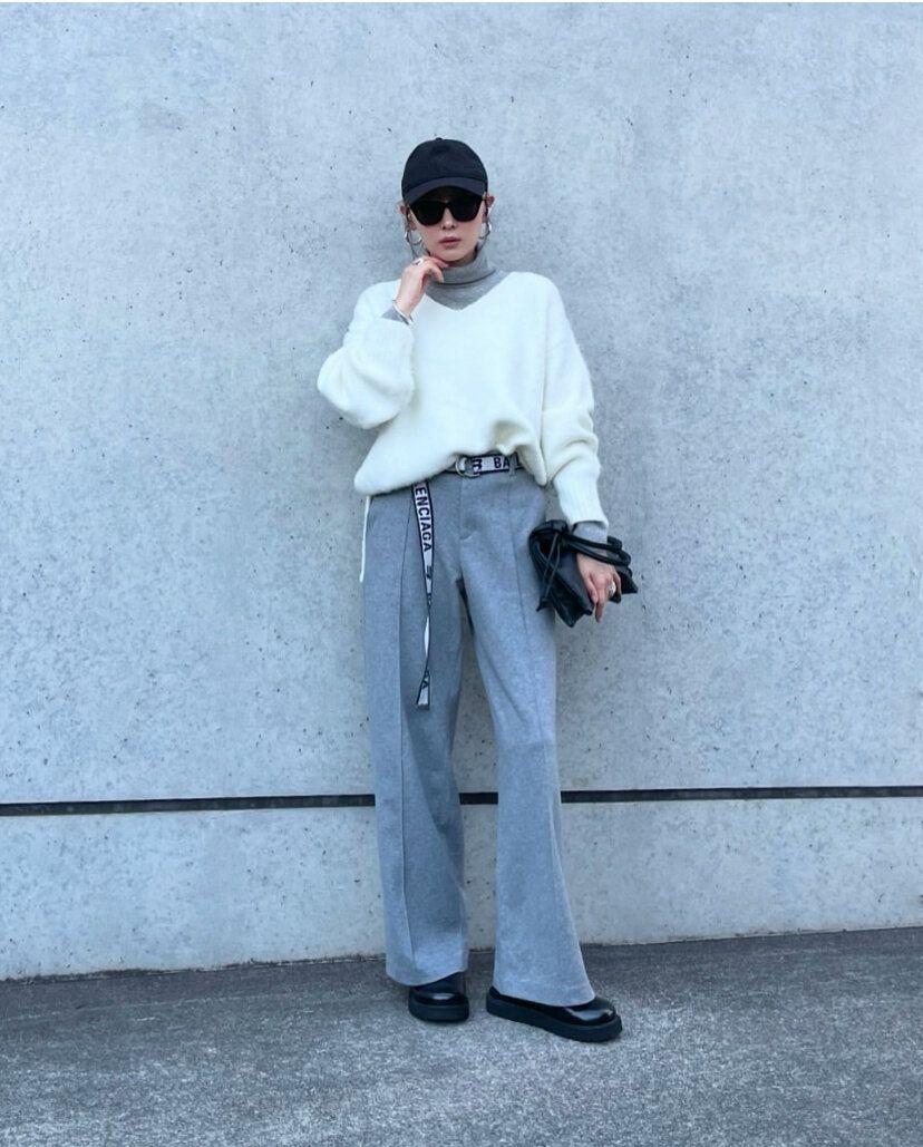 トレンドのシャギーニットはボリュームのあるニットなのでボトムス選びに苦戦する人も多いアイテム。「ブラッシュドジャージーワイドパンツ」は、フロントにタックが入っているデザインなので縦長のシルエットが強調されていて、ワイドパンツでもスッキリとした印象を与えてくれます。ボリュームのあるシャギーニットと相性抜群!