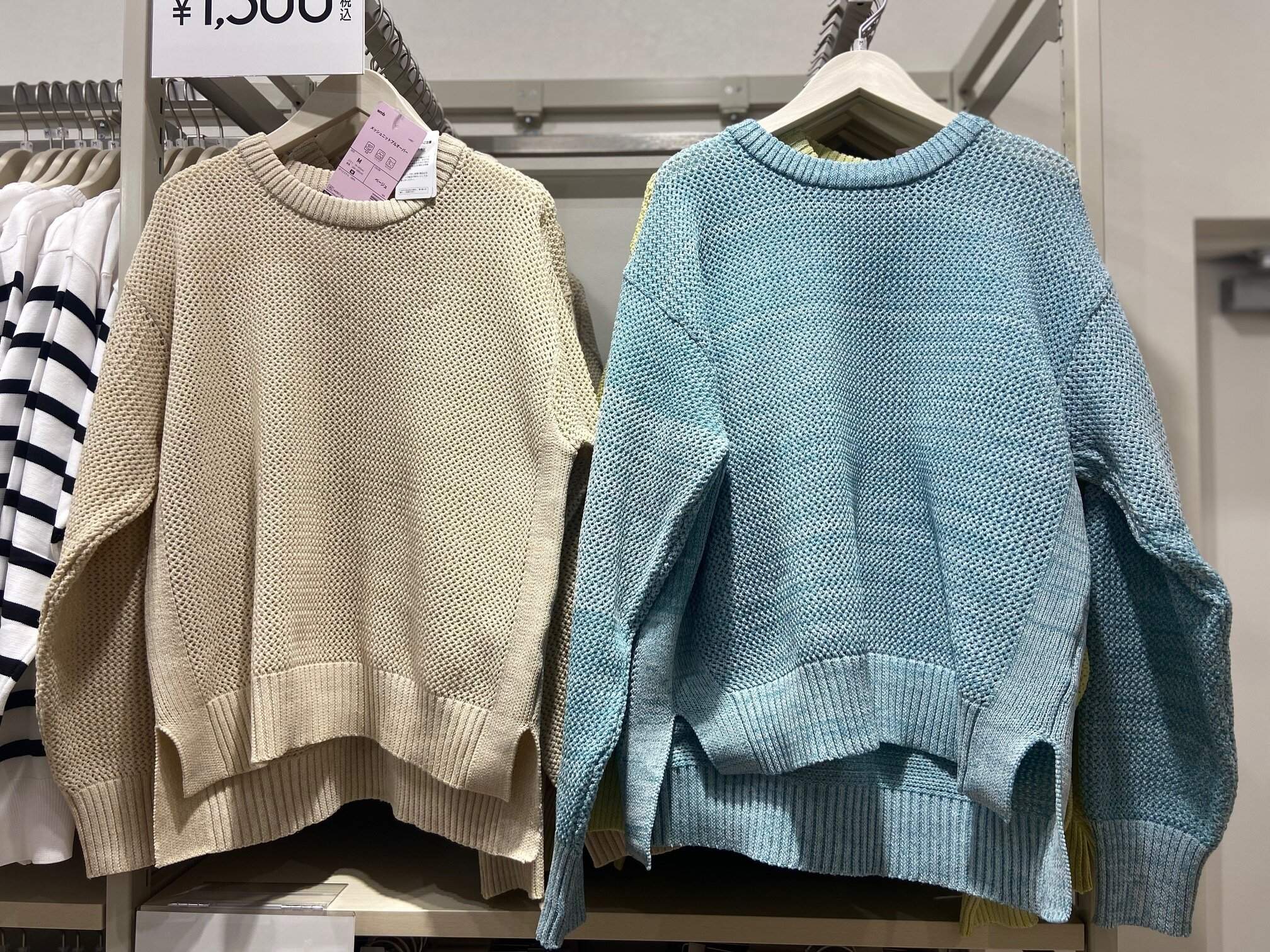 「メッシュニットプルオーバー」(1,500円)は、暖かくなってきた今の時期にピッタリのスプリングニット。カラフルなニットはコーディネートを一気に華やかにしてくれます。