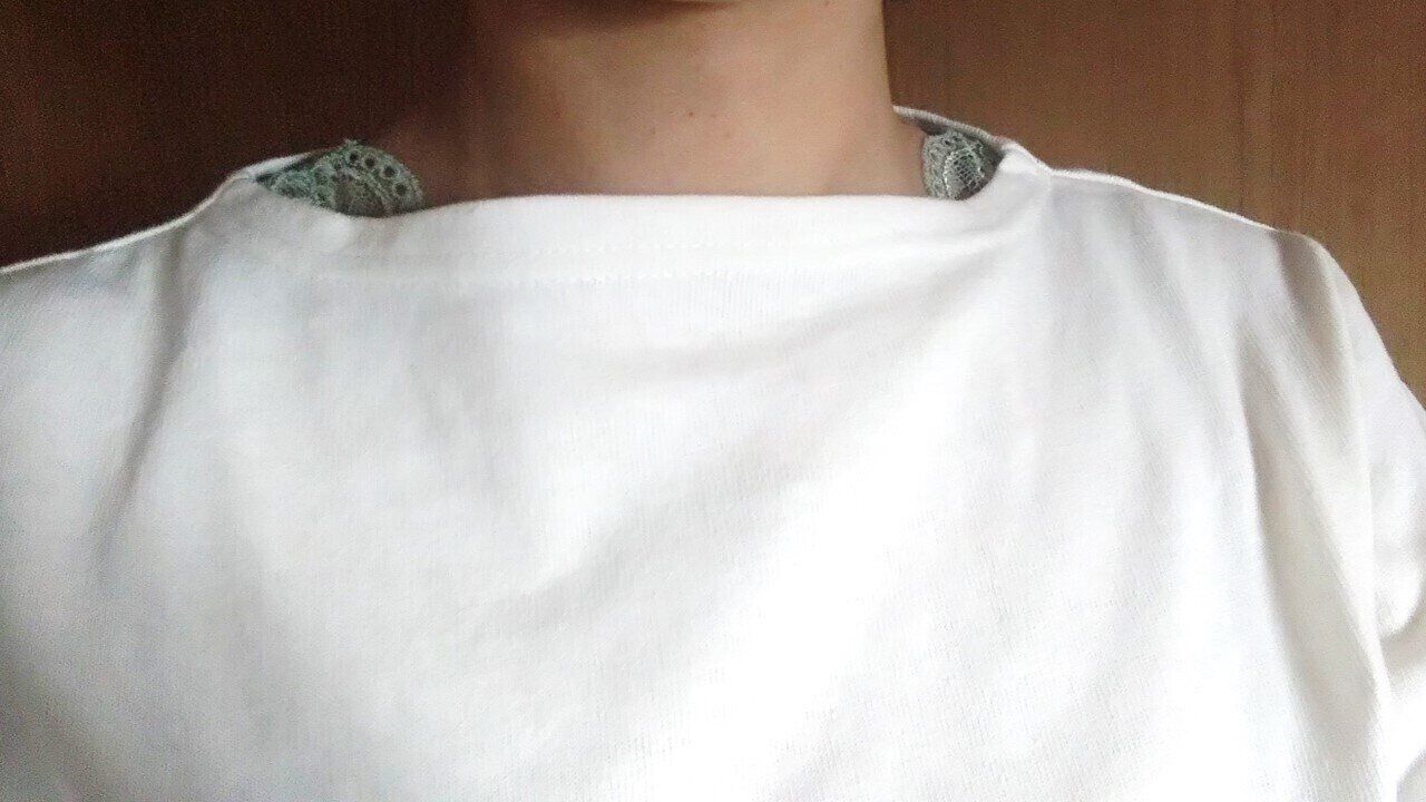 実際に購入したオフホワイトを着てみると、ほどよい厚みもあるので透け感はあまり感じず。