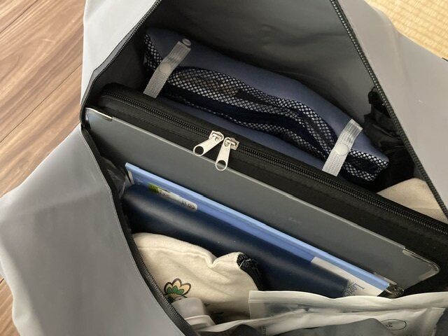 筆者1泊分の荷物と、ノートパソコン・コード類を入れてみました。まだかなり余裕があります。
