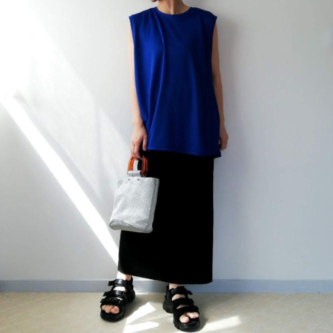 青×黒で、きりっとモード風なコーデ。