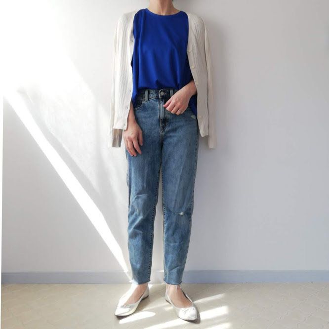 デニムと青・白の組み合わせで、好印象なきれいめコーデが完成!
