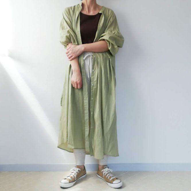 あえてインせず、トレンドライクなチュニック丈の着こなしに。