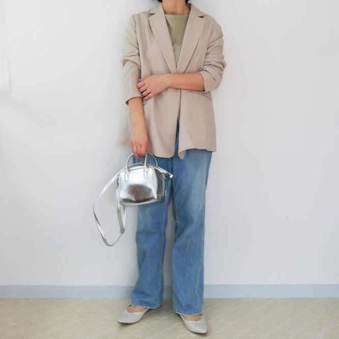 体に沿うシルエットで、デニムコーデを女らしい印象の大人カジュアルに格上げ!