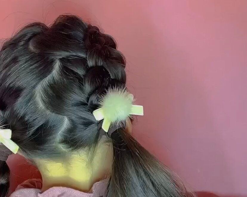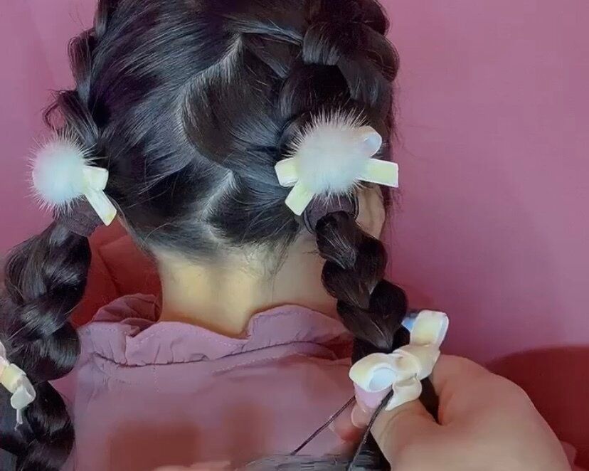 4.残った髪も先程と同じく3回ぐらい三つ編みしてゴムで結べば完成です!