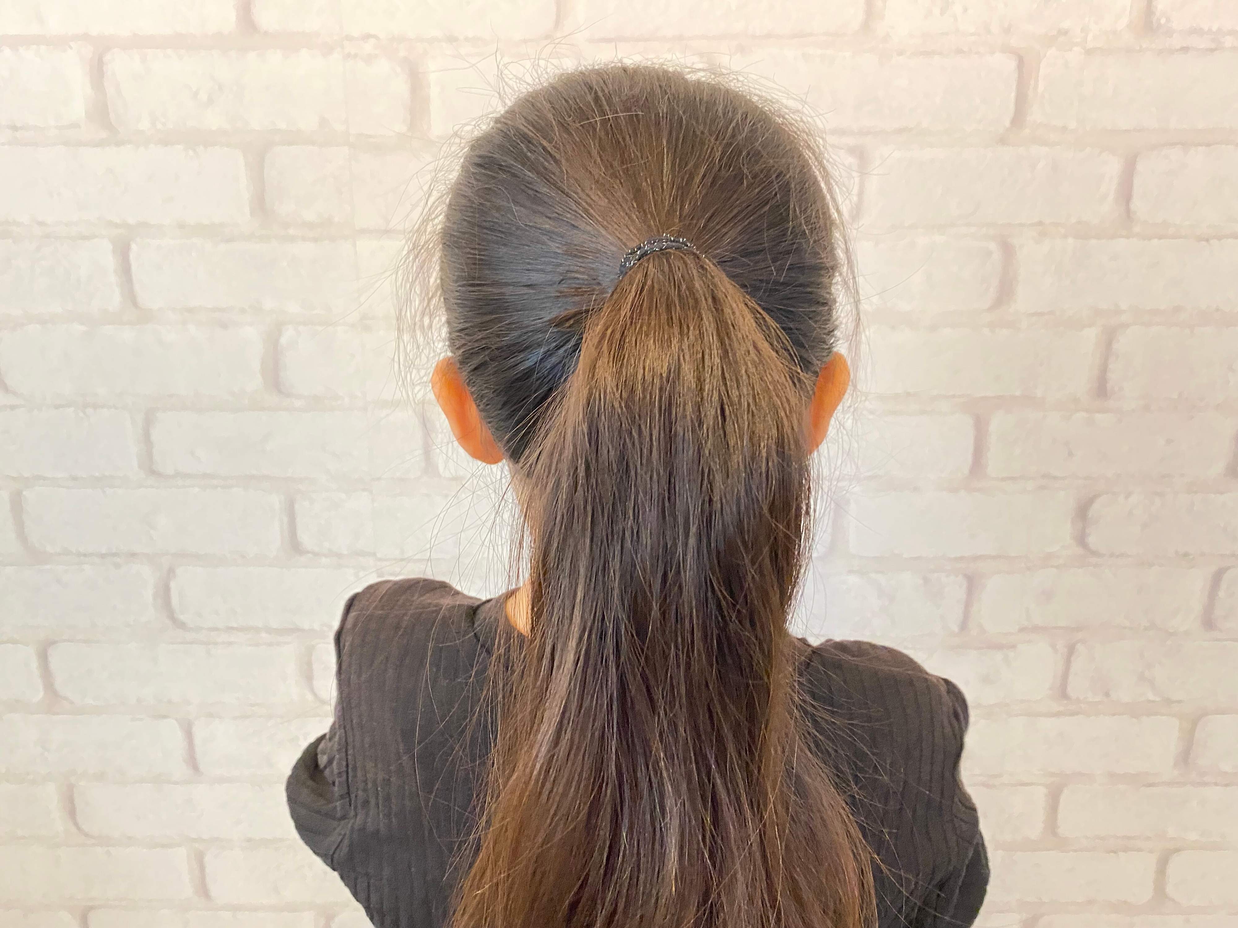 1.後頭部より少し上あたりでポニーテールをします。