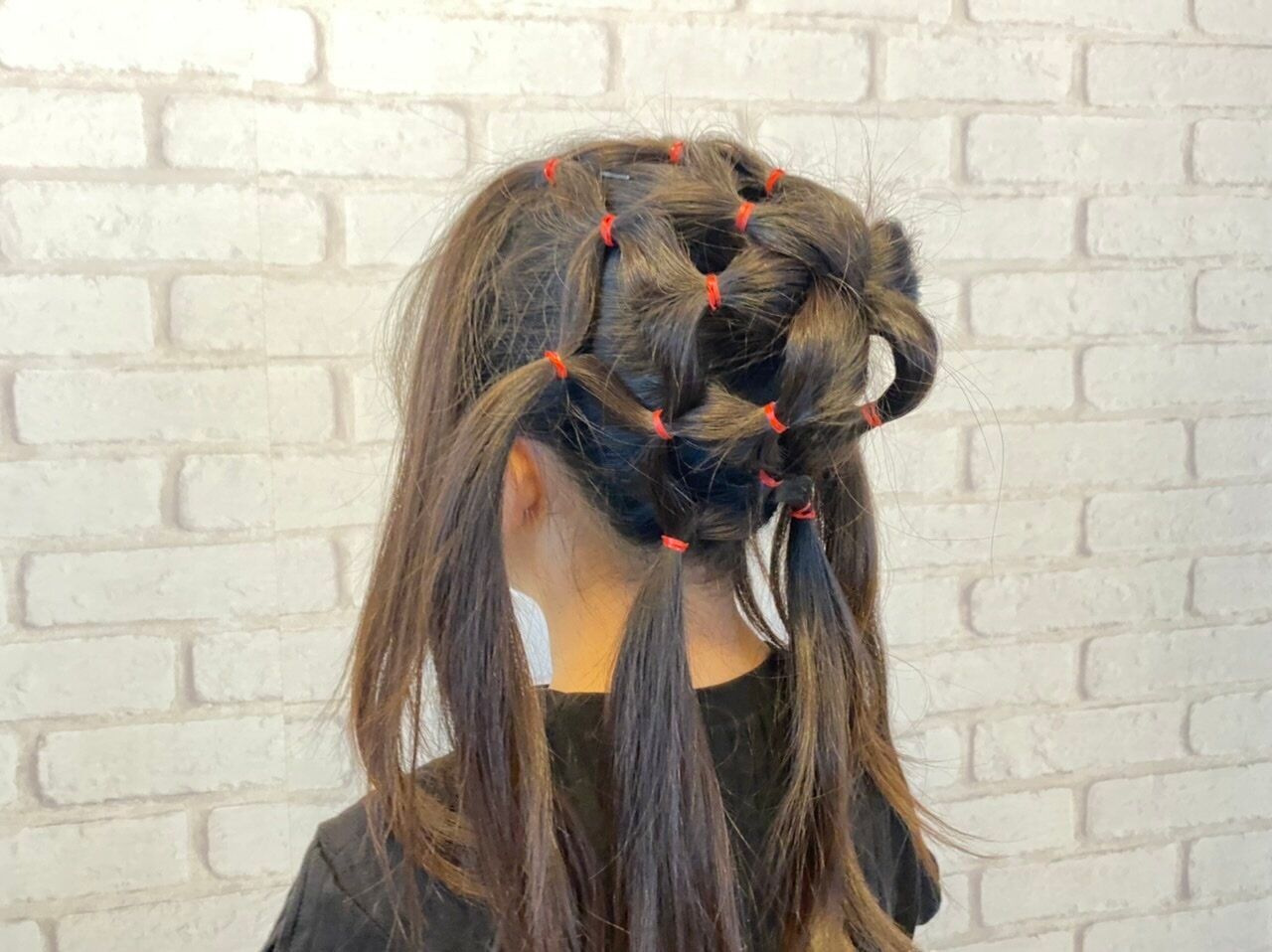 最後に結んだゴムの部分にクモのヘアアクセサリーなど付けると更にクマの巣風に見えると思います♪