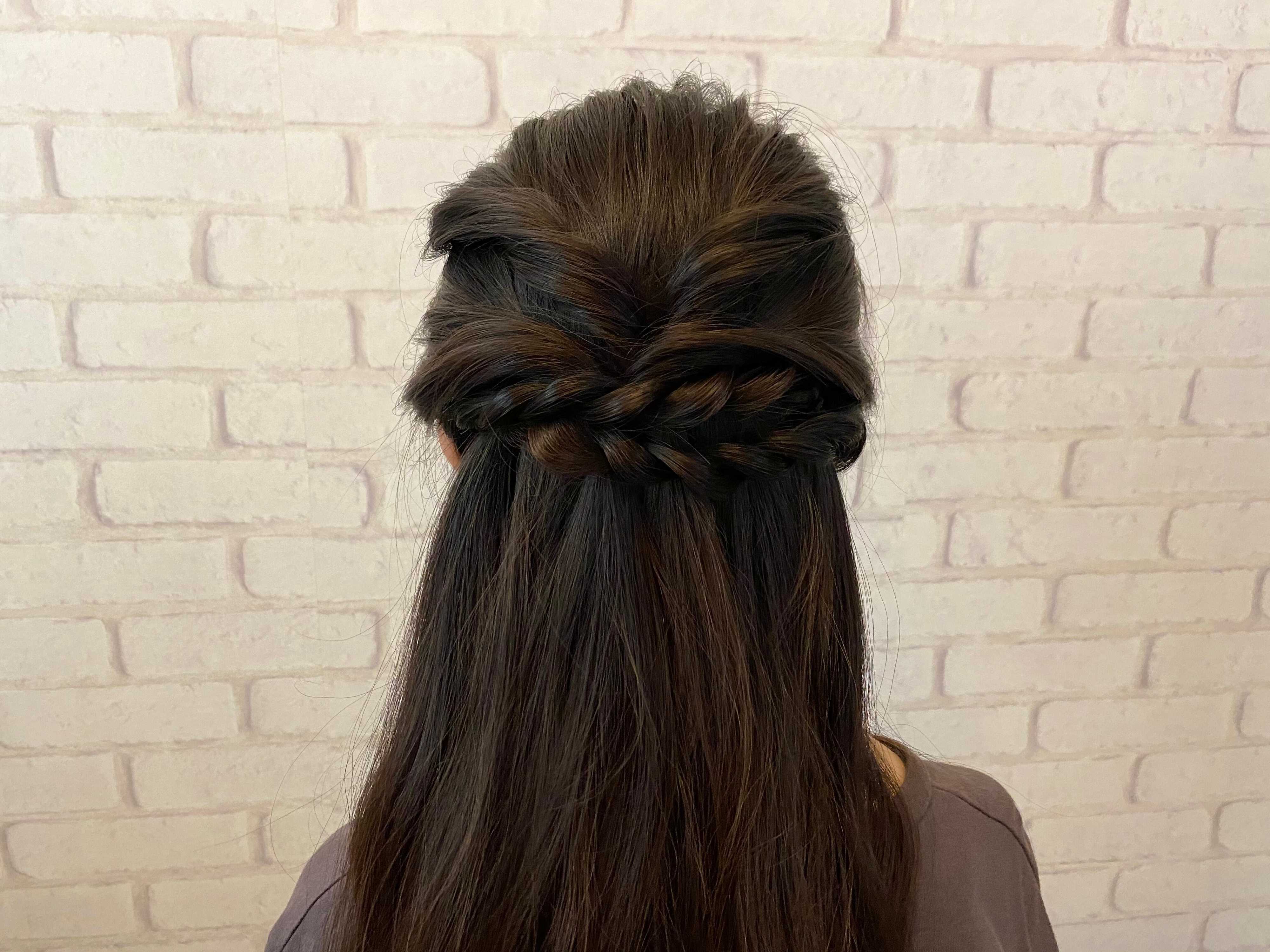 先程のヘアアレンジは超簡単ヘアアレンジでしたが、次のアレンジはもう少しレベルアップしたヘアアレンジをご紹介します♪