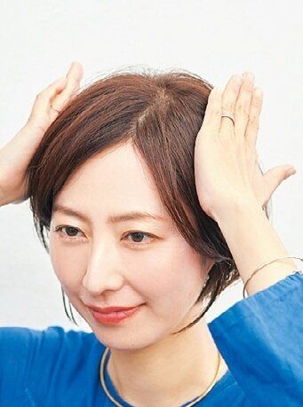 前髪の上部分がふわっとすると、若々しい印象に。手ぐしでジグザグに動かしながら後方から風をあてる。