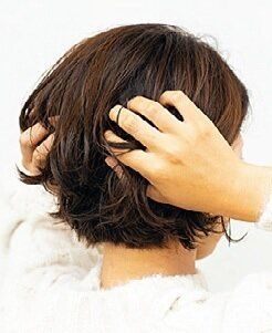 後頭部がぺたんとつぶれていると、顔が大きく見えてしまう原因に。ワックスをもみ込んでボリュームを引き出し、ふんわりと動きを出して。