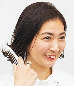 ワックスとオイルを1:1で混ぜ、毛先を中心になじませる。さらに目の粗いコームで根元からとかして毛先を外はねに。ぬれたような質感がおしゃれ。