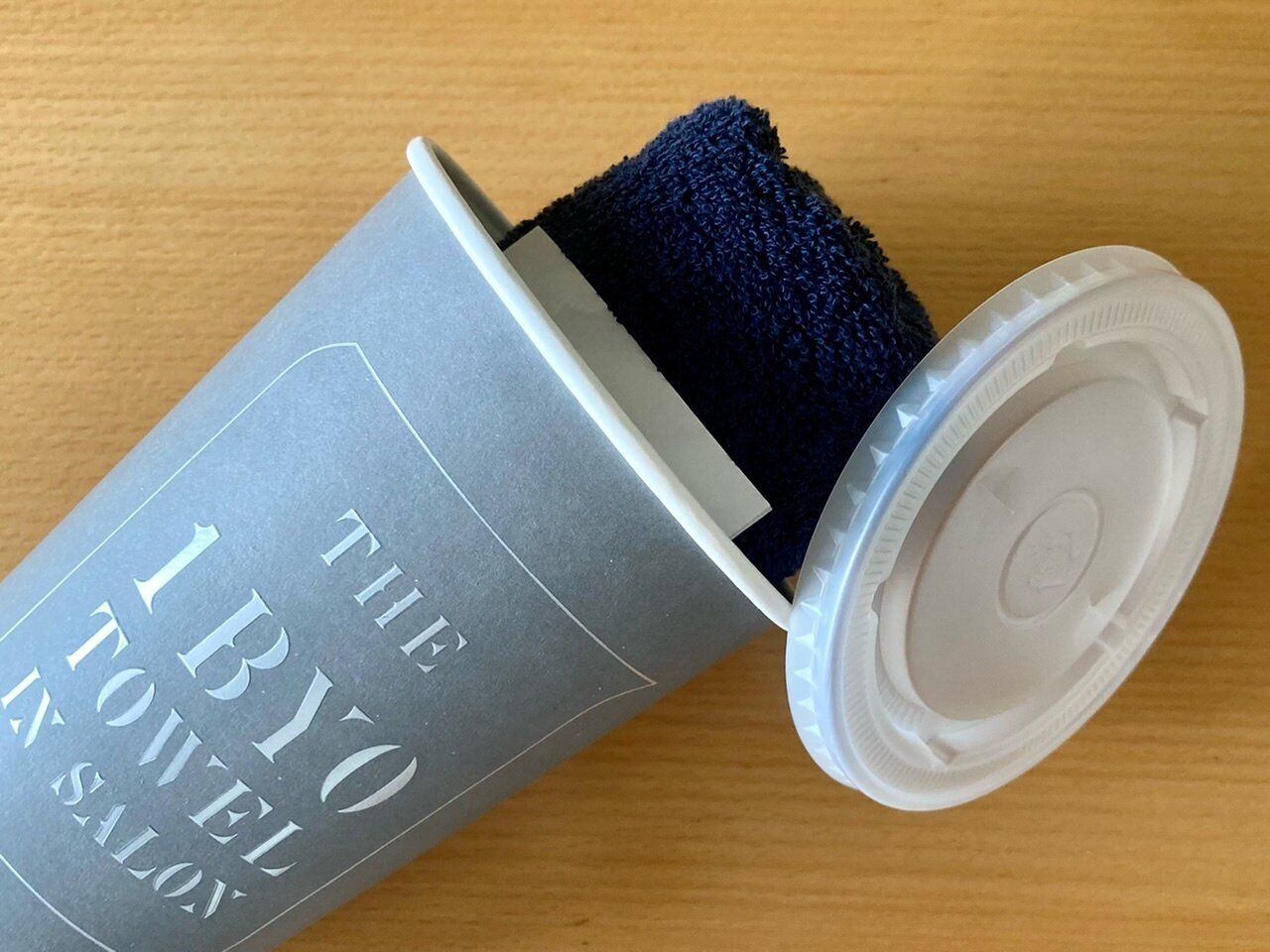 美容室で購入した「1秒タオル」は、大きなドリンクカップのパッケージ。好奇心をくすぐられます。見た目のかわいさから、ギフトとして購入される方も多いようでした。