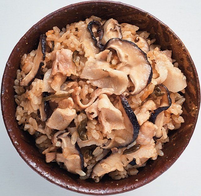 豚肉としいたけの塩こぶめし