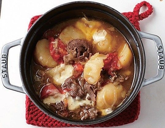 牛肉は最初から入れて煮るからとろっと柔らか。トマト&チーズでうまみ抜群!