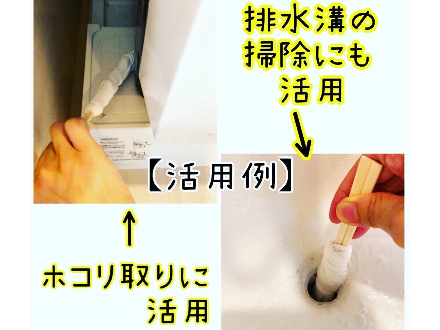 作ったおそうじ棒は狭い箇所のほこり取りや手の届きにくい排水溝の奥の掃除にも大活躍です。