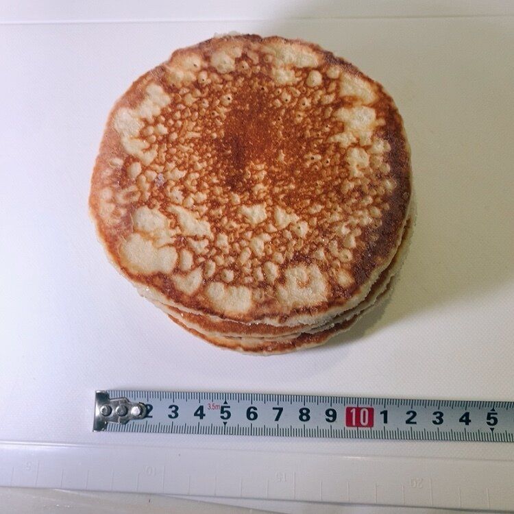 今流行りのボリューム感のあるパンケーキと言うより、昔ながらの存在のような控えめな感じですが安心感があります。朝ご飯にも、おやつにも使えて便利!いざという時のために、冷蔵庫に常備品で保存しておくのにオススメな1品です。