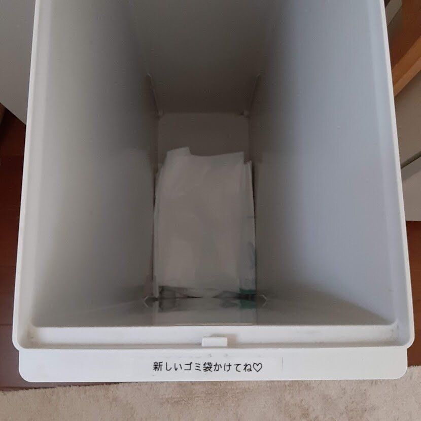 家族がゴミを出した後に、ゴミ箱にゴミ袋がかかっていない!と思ったことはありませんか。我が家では、それに気づいてもらうように、ゴミ箱の下にゴミ袋を入れています。更にゴミ箱自体にラベリングをして、かけたくなる工夫を。ここまでお膳立てされたら、かけない理由が見つからない!