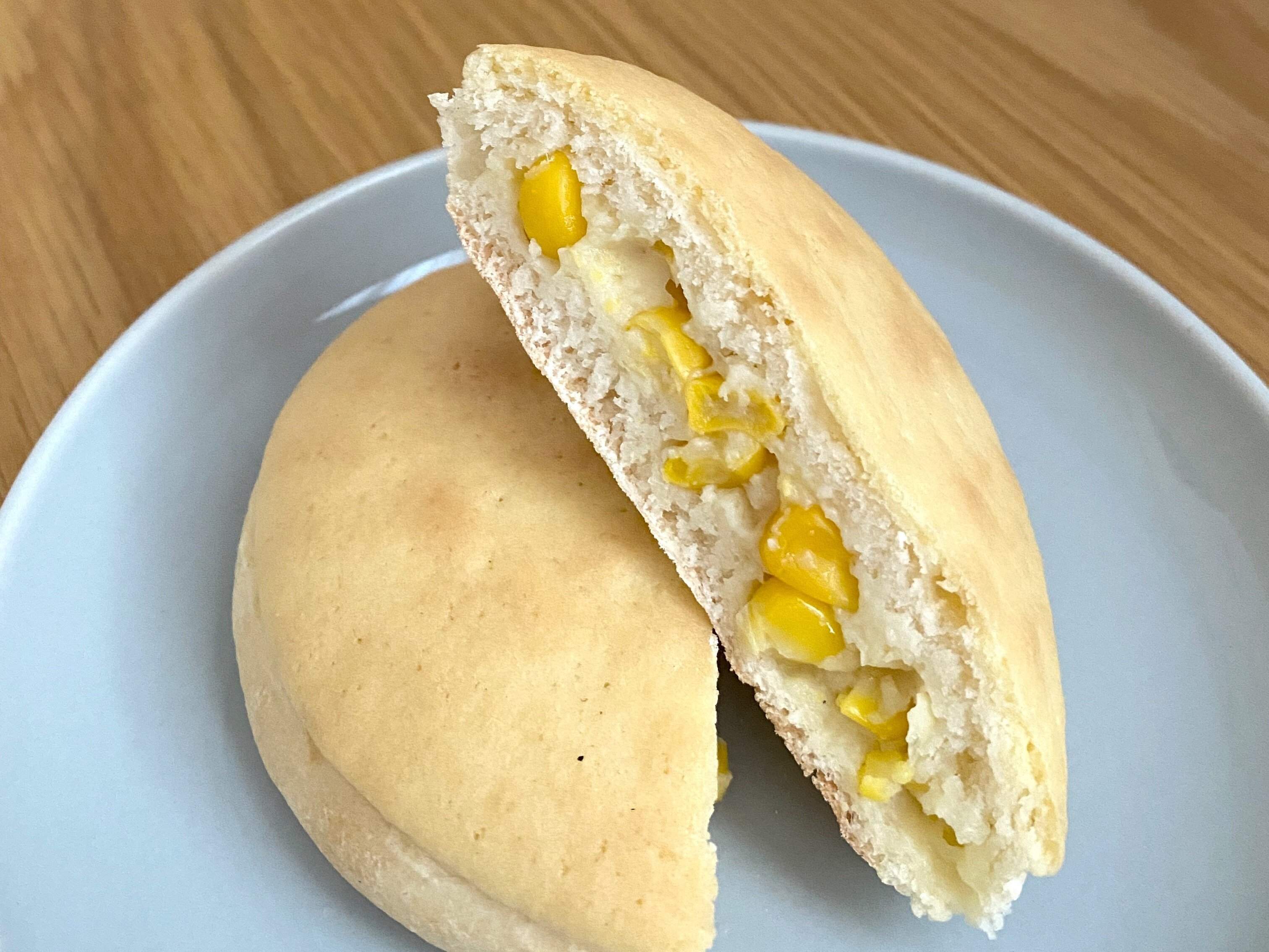 表面にサックリとした生地をのせて焼き上げたパン生地に、つぶつぶのスイートコーンとコーンクリームが入っています。