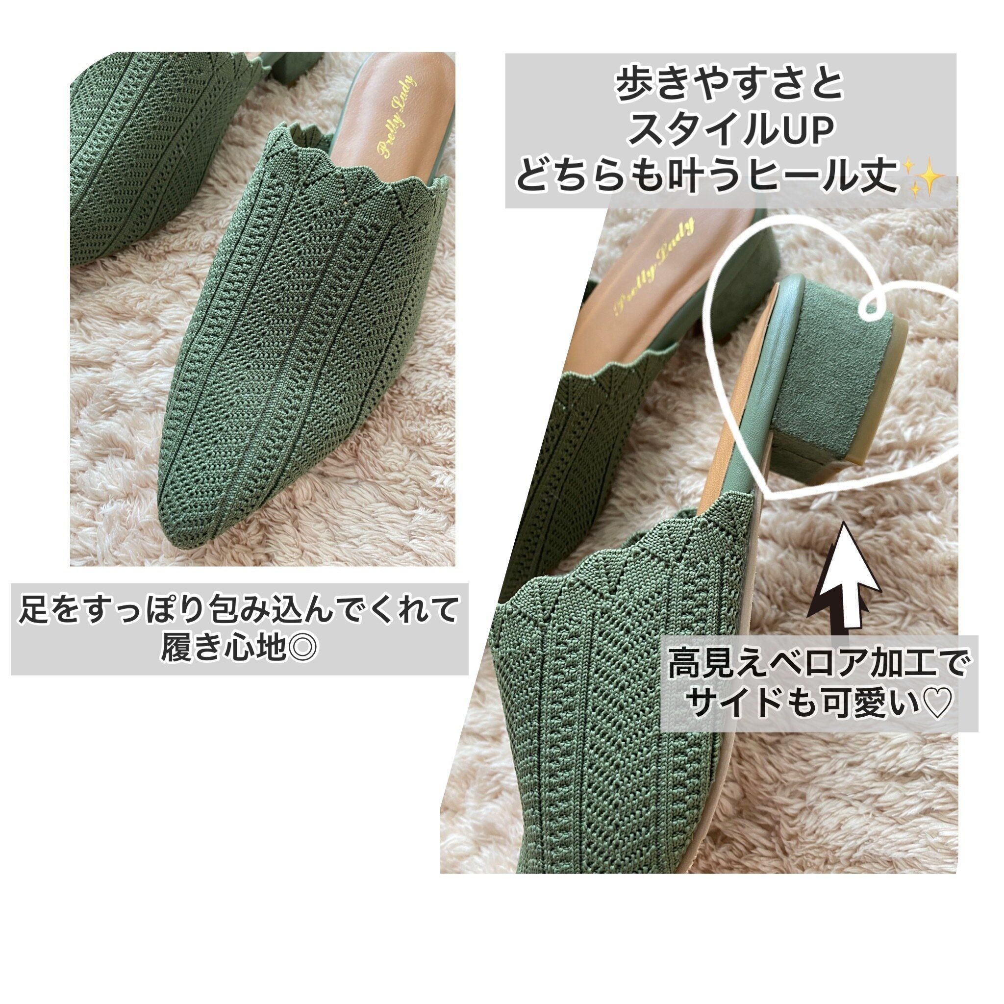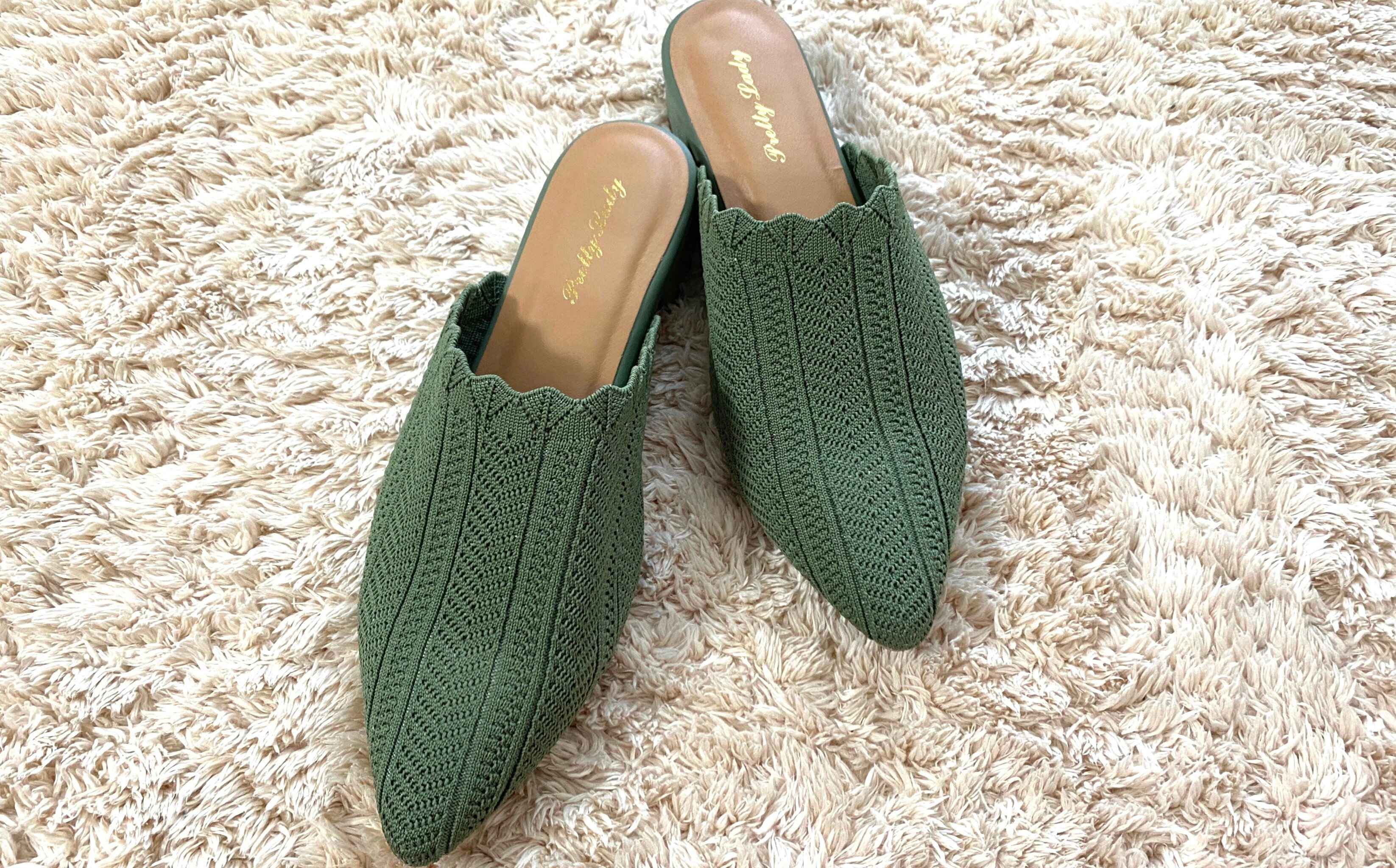 前回に続きしまむらで見つけたのは流行のグリーンカラーがトレンド感たっぷりのニットミュールです。