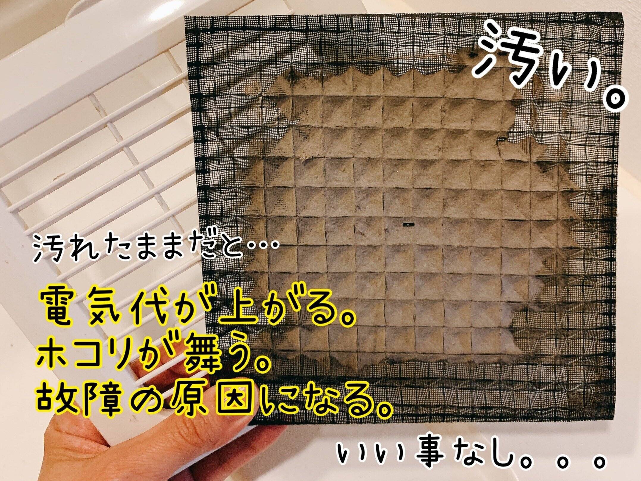 見えない場所ほど汚れの温床。トイレなどは目に見えないトイレットペーパーの繊維が舞い、換気扇に溜まっていきます。フィルターが汚れると換気が十分に行われません。