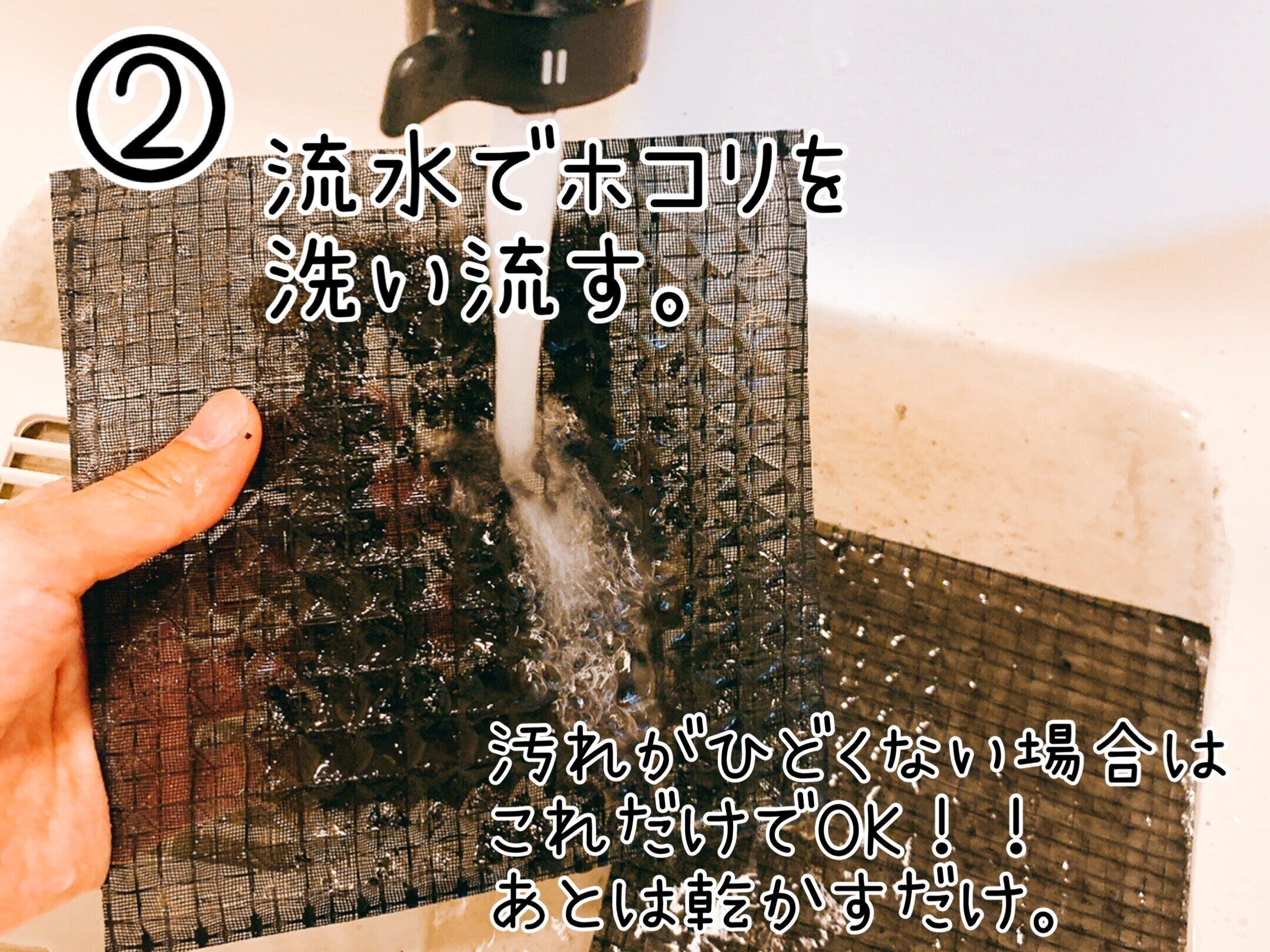 流水でキレイにならずまだフィルターにホコリが付着している場合は、次の手順へいきましょう。