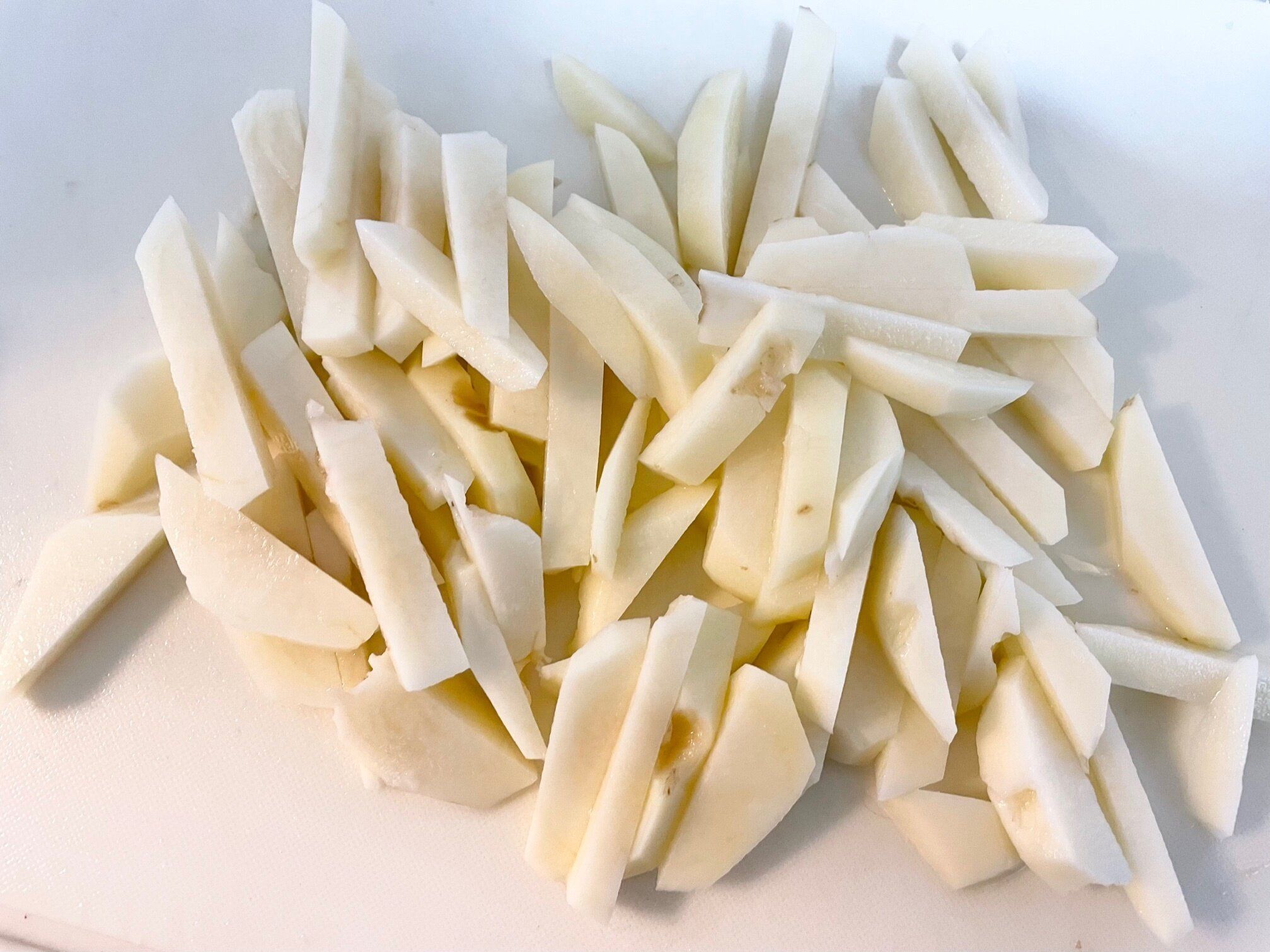 冷凍ポテトも充分おいしいのですが、お家でつくった揚げたてポテトはカリっとホクっと、また格別のおいしさですよ。ぜひお試しください。