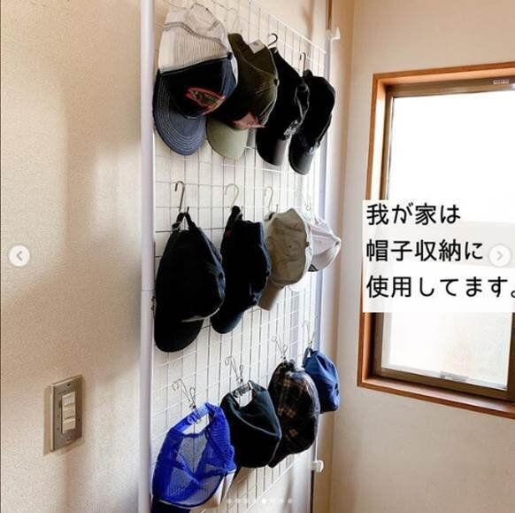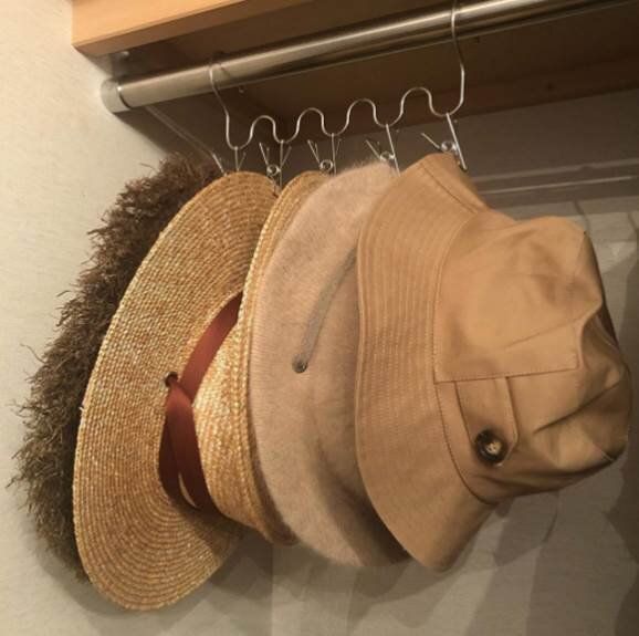 クローゼットの壁面にワイヤーラックをかけるだけで、帽子やリュックなどの小物類の収納力が一気にUPします。ついついポイッとそのへんに置いてしまいがちな小物類も置き場所を決めておくことで散らかり防止にも繋がります。