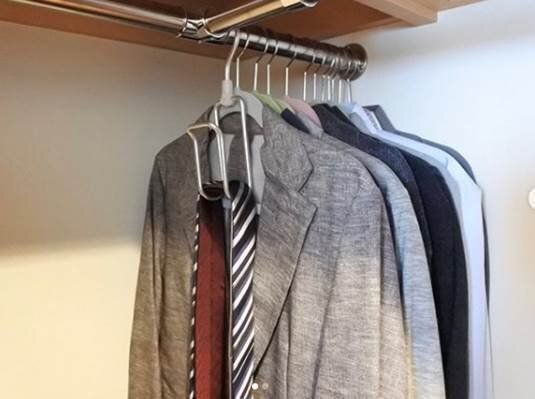こちらはクローゼットの収納スペースをぐっと広げてくれる省スペースハンガー。縦にも横にも使用可能なので、使いたい場所に合わせて設置することができます。クローゼットが狭いかたや衣類が多いかたにおすすめです。