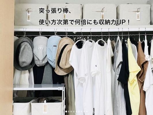クローゼットのハンガーポールにハンガーをかけるスペースがたりない!というかたは、ぜひつっぱり棒をプラスして、スペースを増やしてみてはいかがでしょうか。使用頻度の少ない服をつっぱり棒にかけておけば、収納スペースを増やすことができるだけでなく、クローゼット内もスッキリ見せることが可能です。