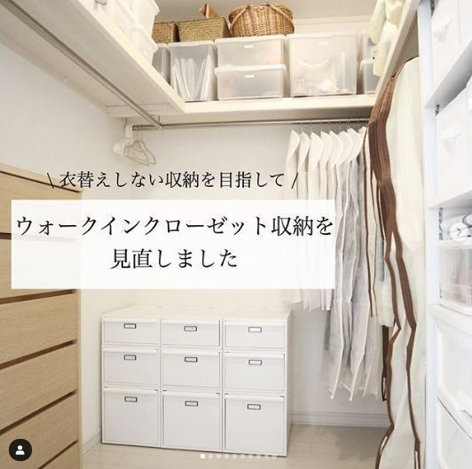 そのままにしているとどんどん洋服が増えていってしまうクローゼットですが、衣替えを機会に傷んでいるものや着ない服を整理することでクローゼットもスッキリします。収納ボックスも白で統一すればスッキリしますね。