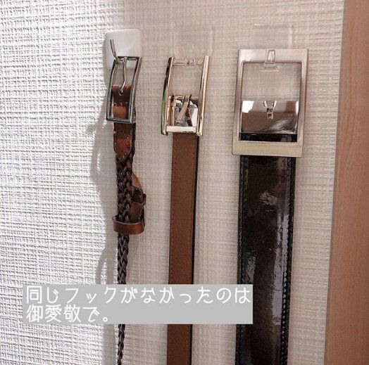 かさばりやすいベルトも専用の収納がなくても、壁にフックをつけるだけでスッキリと収納できます。自分のもっている本数に合わせて、自由に収納スペースを増減できるお手軽さが魅力のアイデアですね。