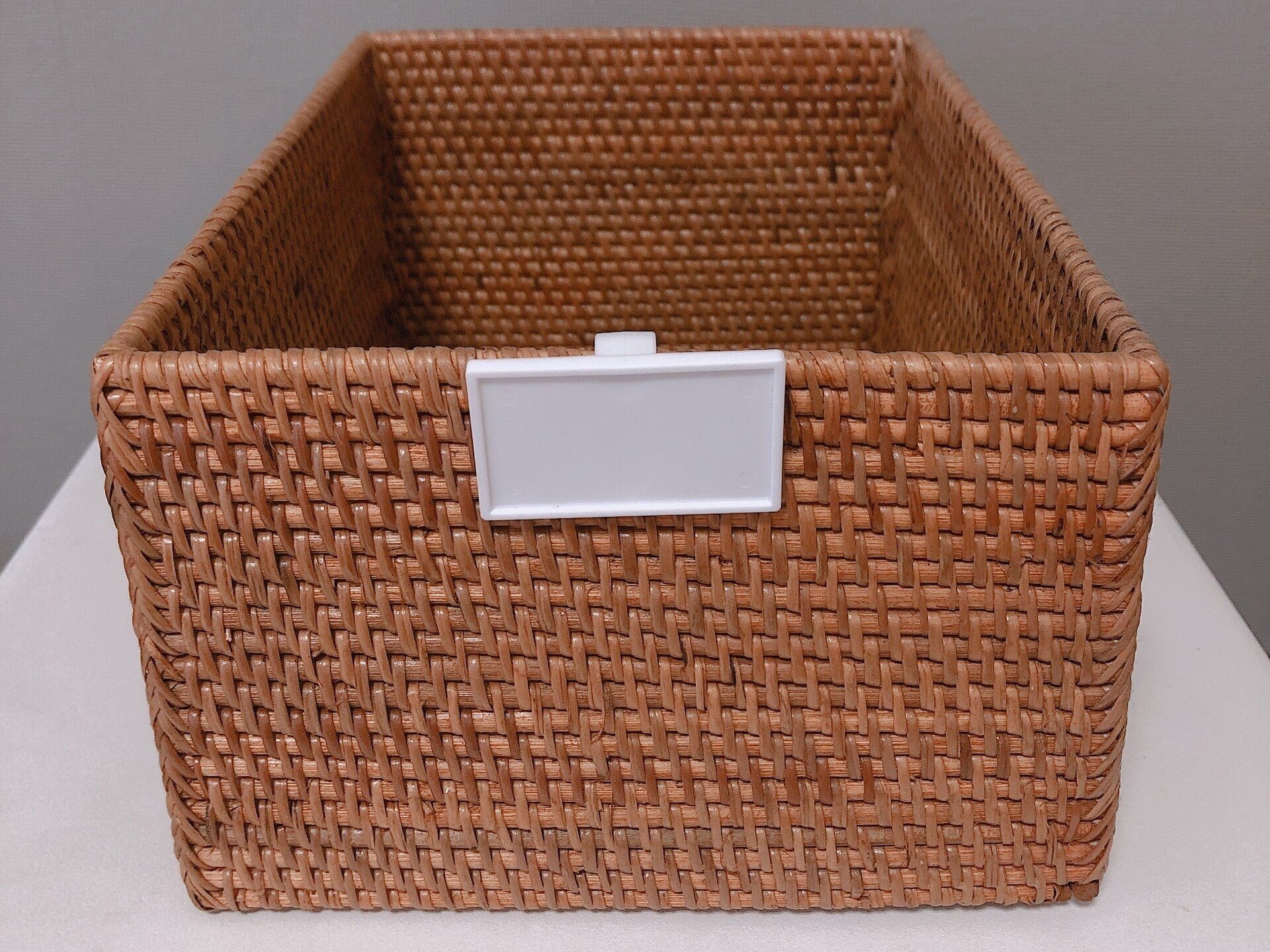 貼れなくても楽々ラベリング♪ラタンや布のボックスに「はさめるラベルプレート」