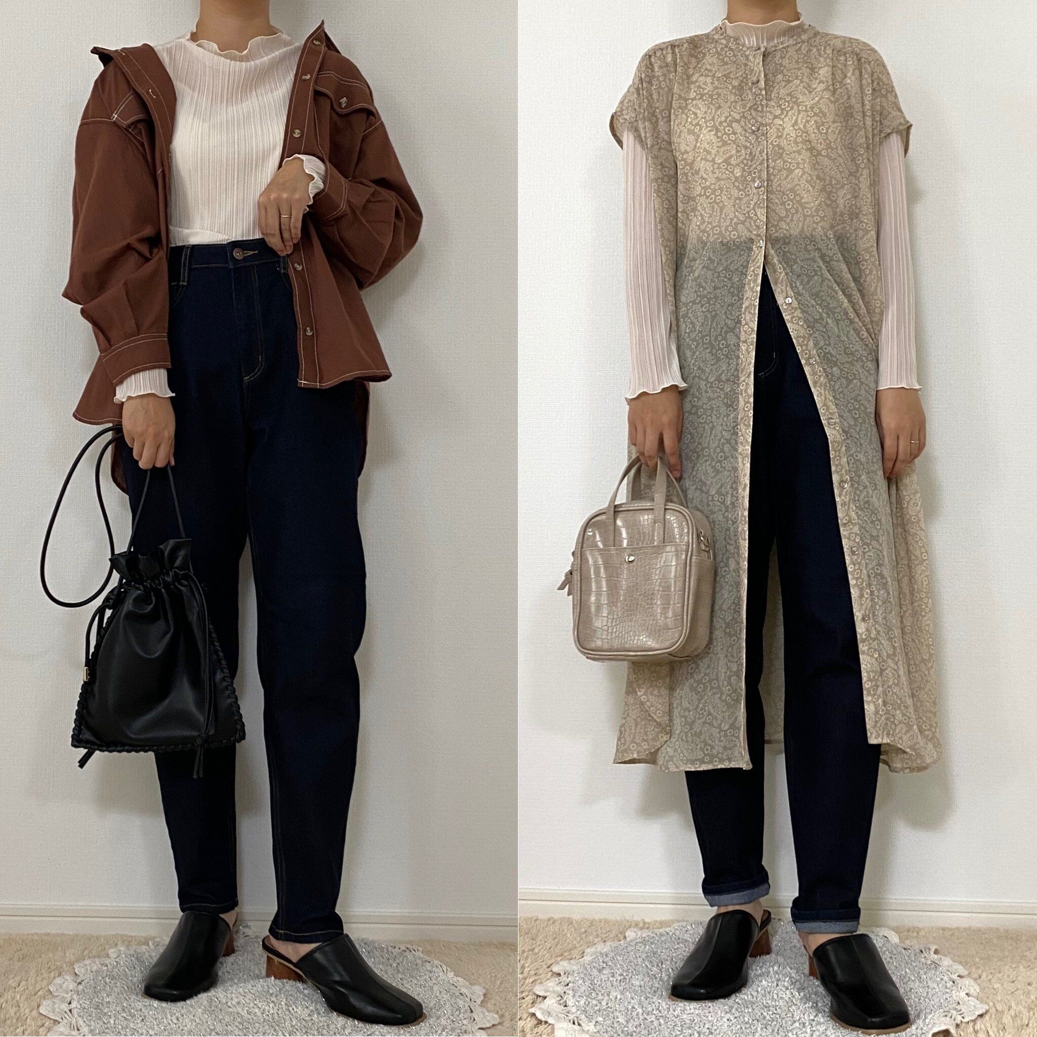 この2コーデで使っているインナーのシアートップスもしまむら商品ですが、前回の記事で詳しく載せているので良かったら一緒にチェックしてみてください。